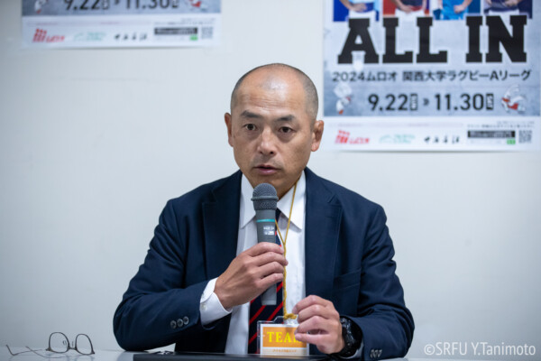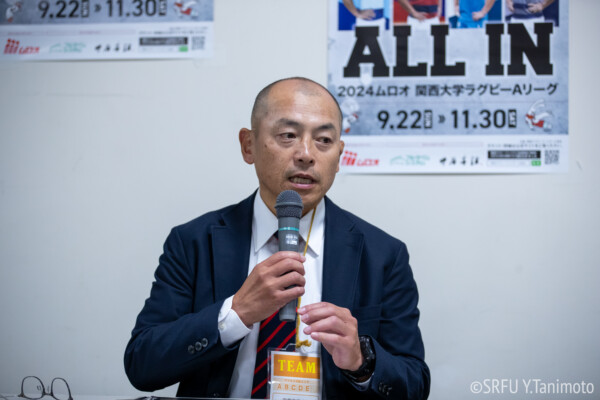 今節については、京都産業大学さんにチャレンジするという構図で、我々としてディフェンスは一定の評価をしています。前半は基本的に硬い形になりがちでしたが、後半はパスが出たり、突破のシーンが非常に増えてきたりしたので、アタックで突破を起こしそのままスコアに繋げていくという我々のスタイルをもう一回出したいと思います。
