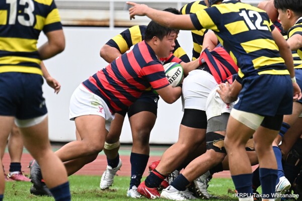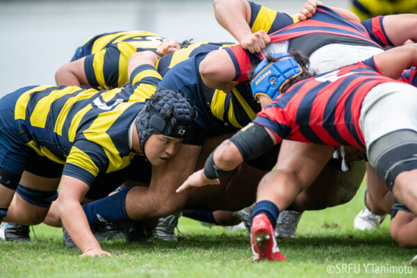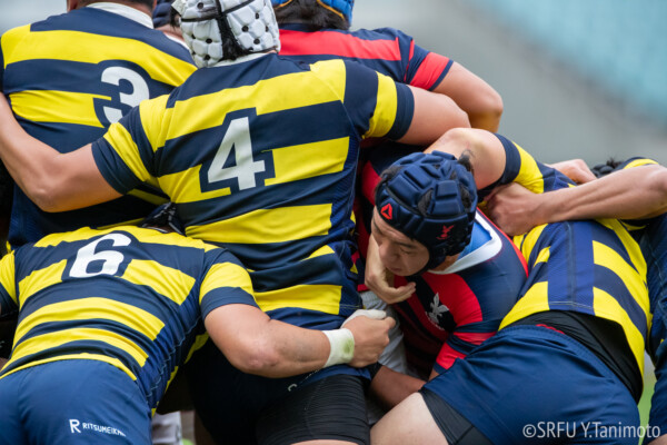 さらに、立命大は、相手にゴール前へ迫られ、ラックサイドを攻められ、インゴールへ持ち込まれるも体を入れてグラウンディングさせない。