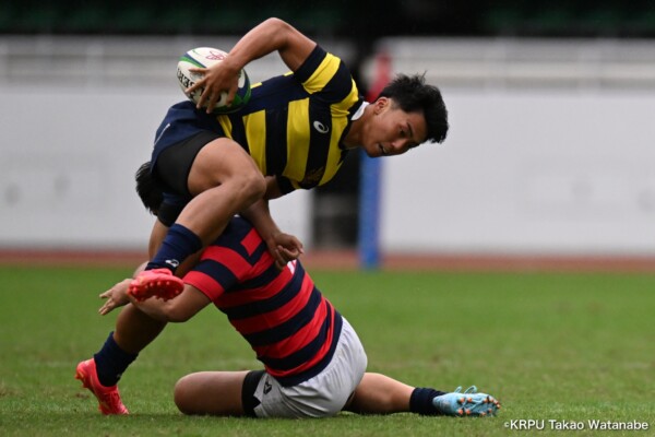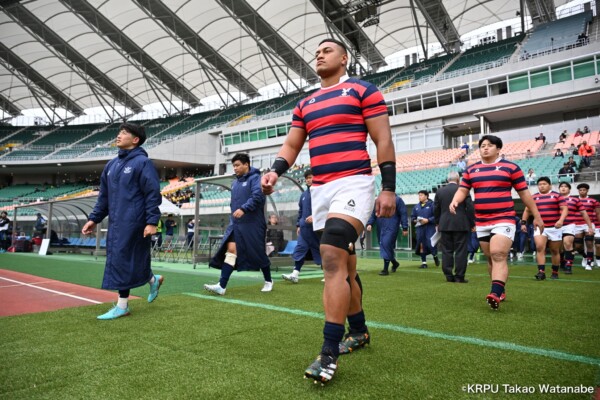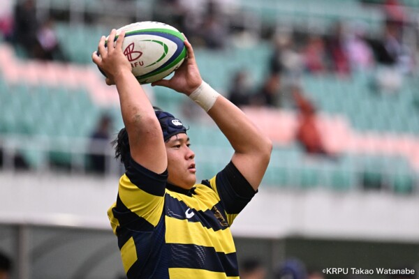 それでも、京産大は、後半41分、相手ハンドのペナルティからキックで前進し、相手陣ゴール前5m右ラインアウトからモールを形成し押し込み、HO⑯平野叶苑がトライ、47-12でフルタイム。
