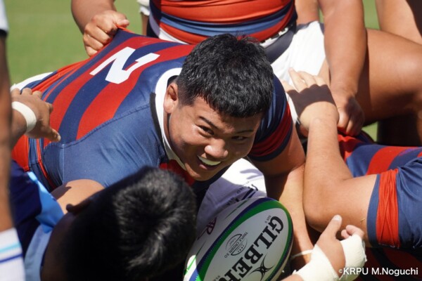 自分たちの感触ではスクラムは負けていないが、相手との組み合いで合わなかった。(摂南大学の)両ロックが留学生なので重いスクラム。そこに対し、自分たちが粉砕できなかったのが反省点。スクラムは1年間ブレずに積み上げてきた。リザーブに入った2人も同じようにやってくれてよかった。