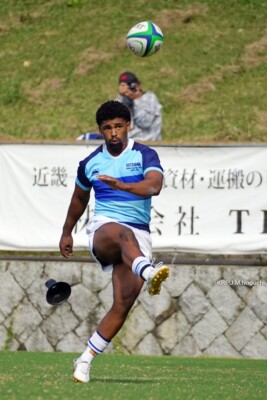 22分、摂南大がキックの応酬からチャンスを掴みSO⑩村上のキックパスを受けたWTB⑪カストンが左中間にトライ、GKもWTB⑪カストンが成功。39-26