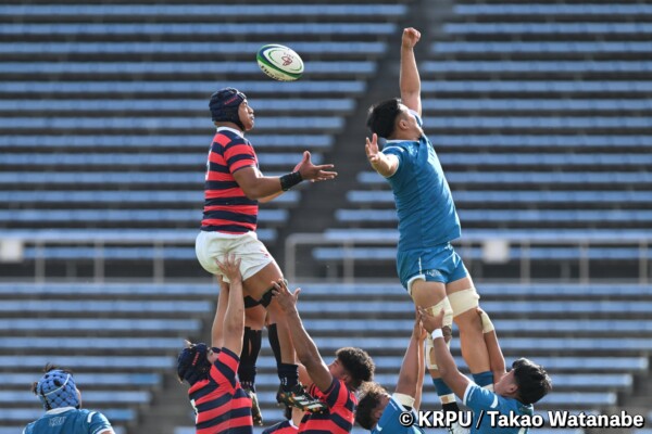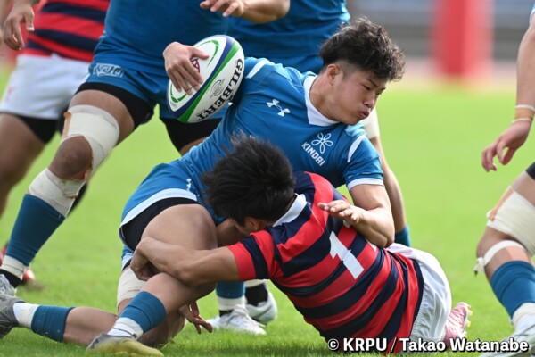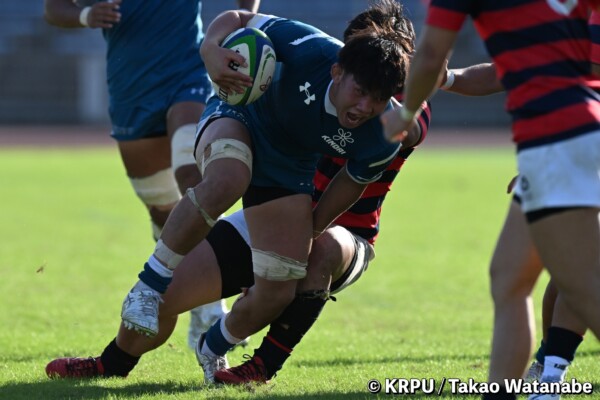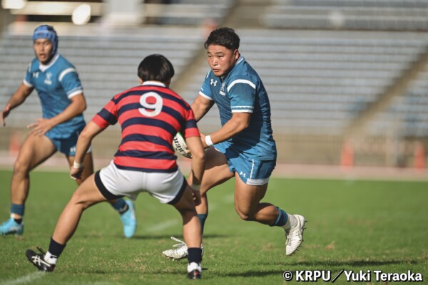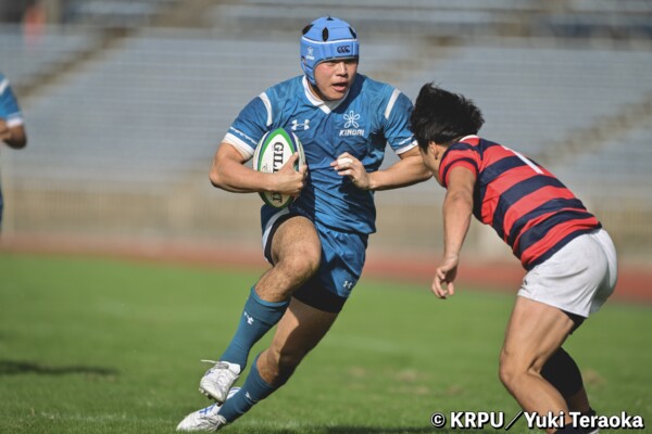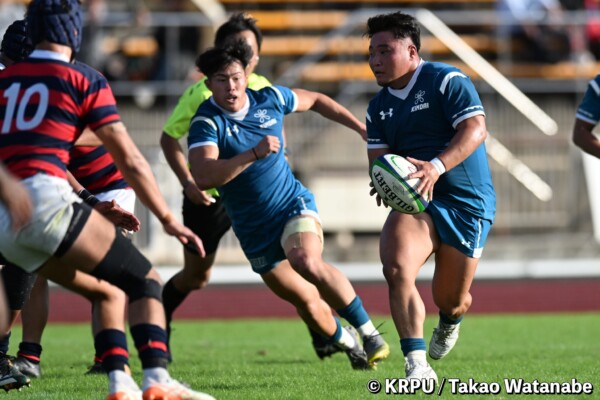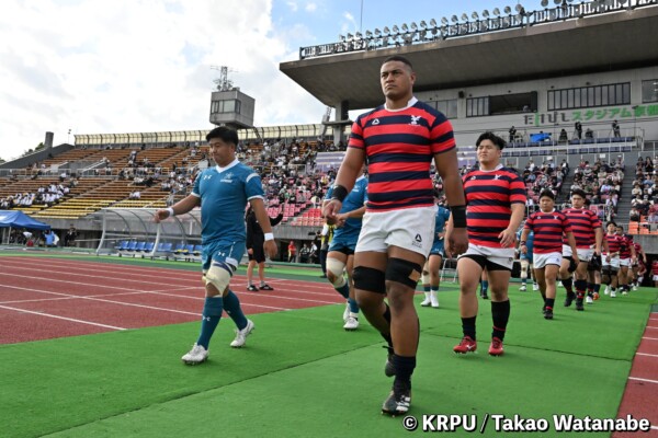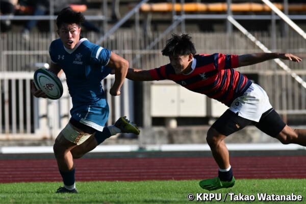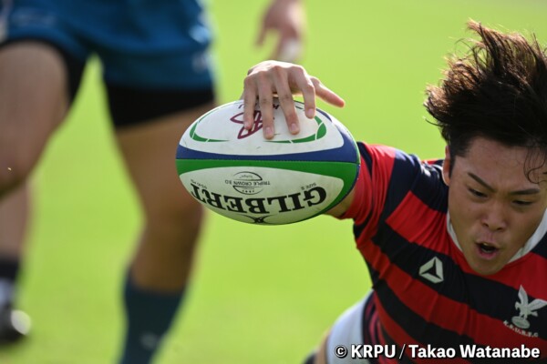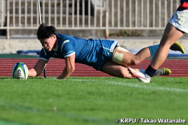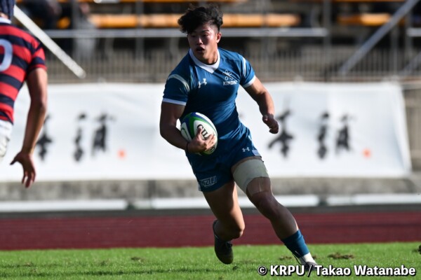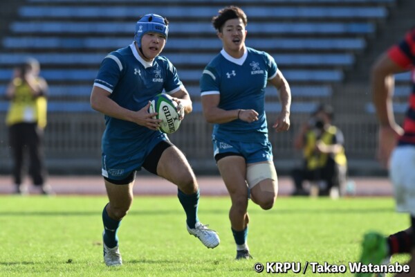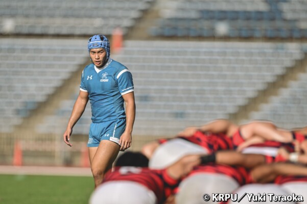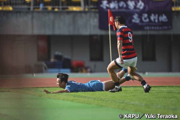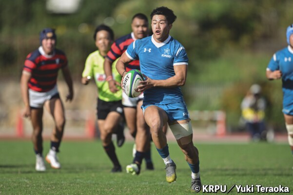 32分に近大エースWTB⑭植田和磨がトライ(GK成功)し7点を返すも、42分にゴール前モールから京産大HO⑯福留斗生がトライし、ゲームセット。(56-14)