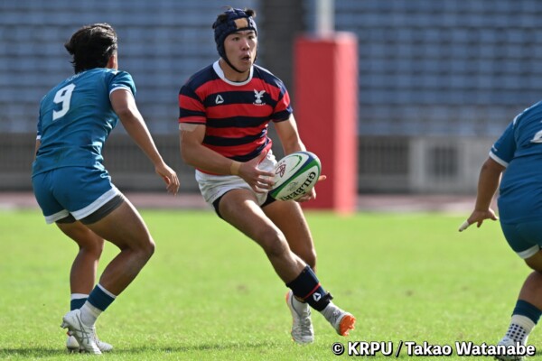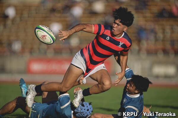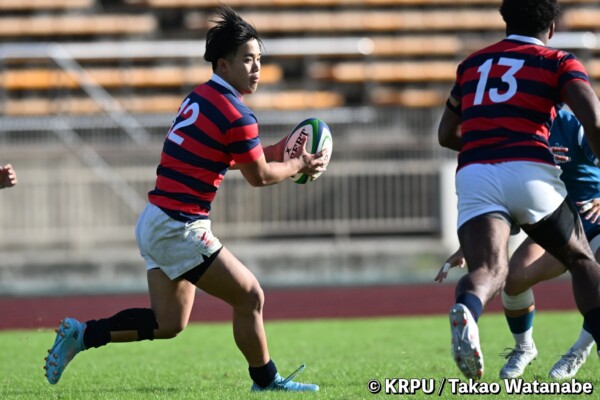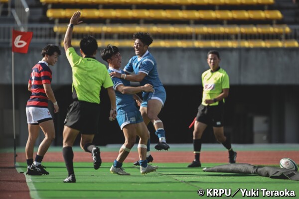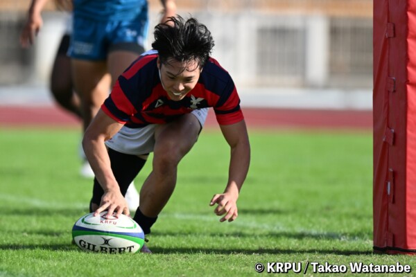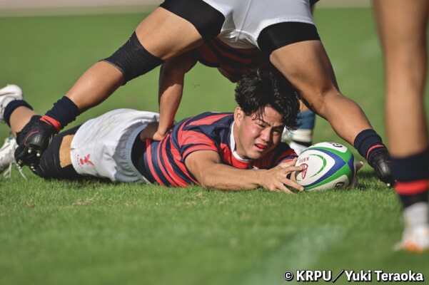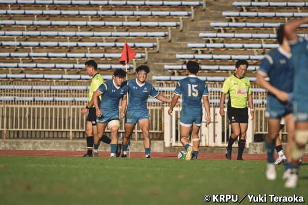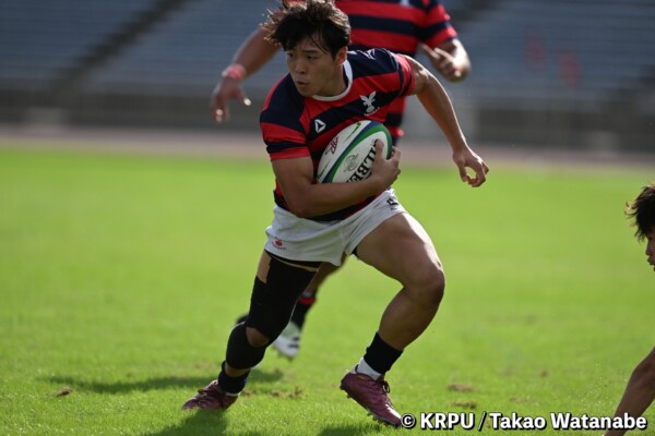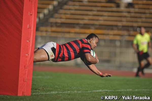 28分にもFB⑮奈須貴大が追加のトライ(GKはCTB㉒辻野隼大が決める)。(49-7)