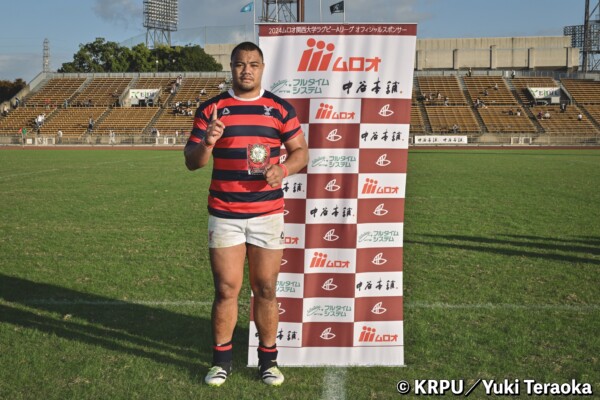 POMには、本日も存在感を見せつけた京産大NO8⑧シオネ・ポルテレ選出された。
