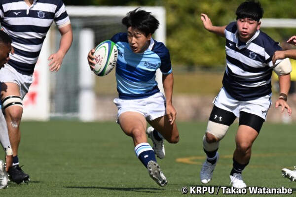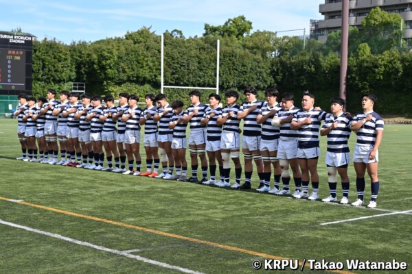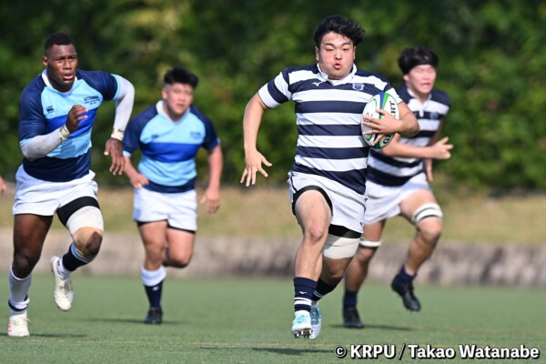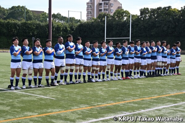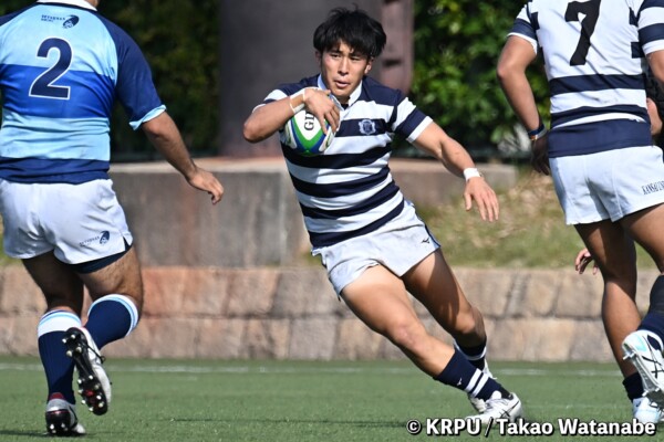 関西大SO⑩崎田士人のキックオフで、後半が開始。後半に入り、できるだけ早い時間帯に関西大が反撃したいところ。