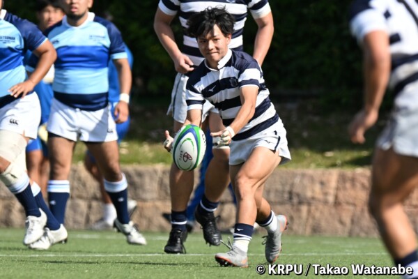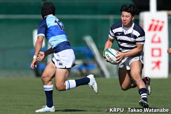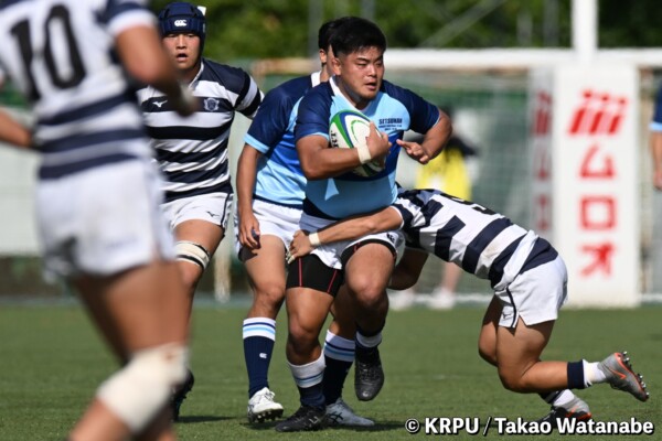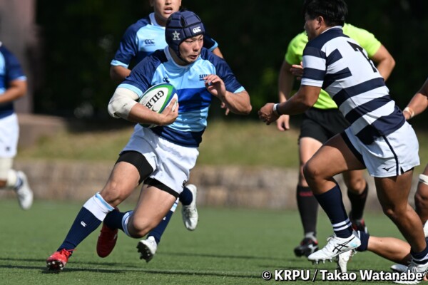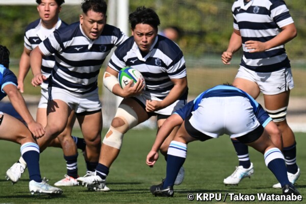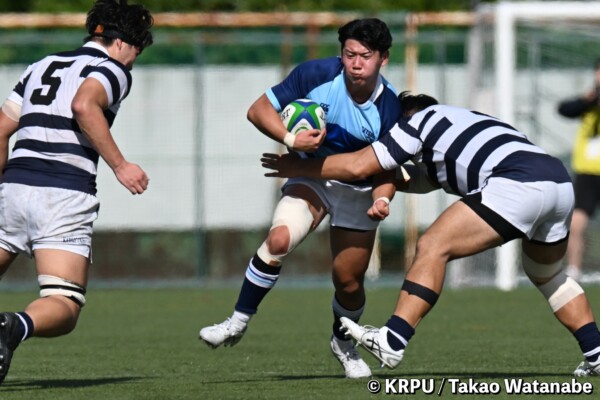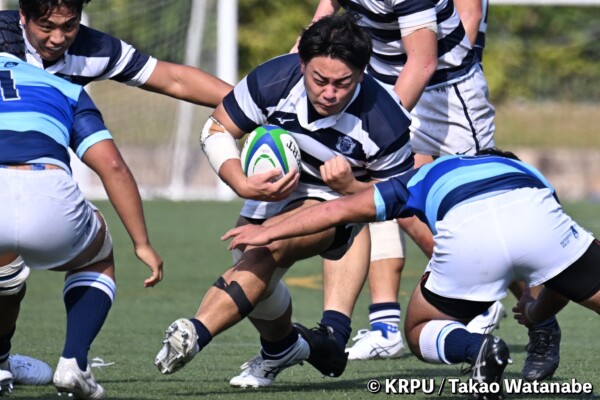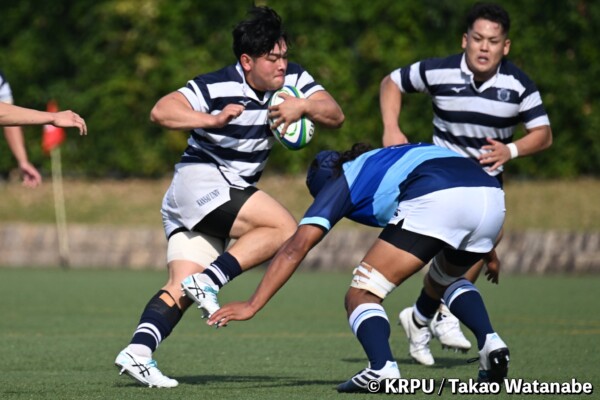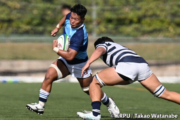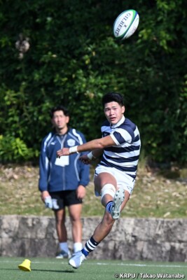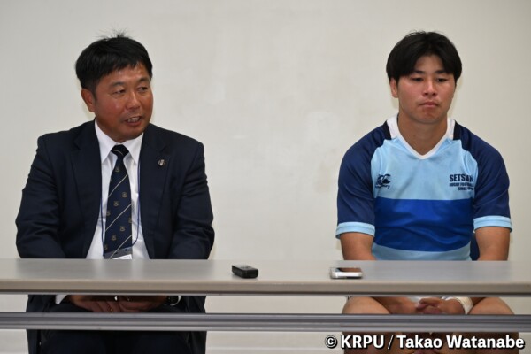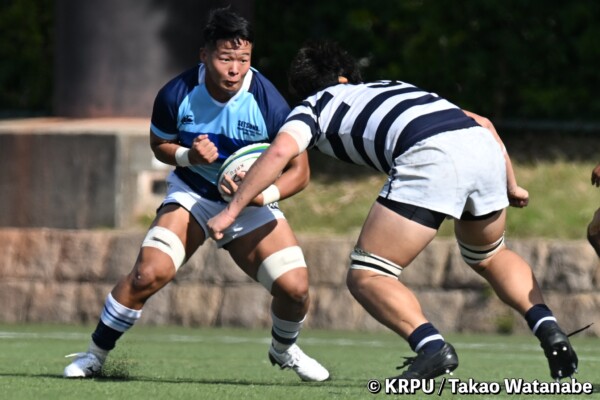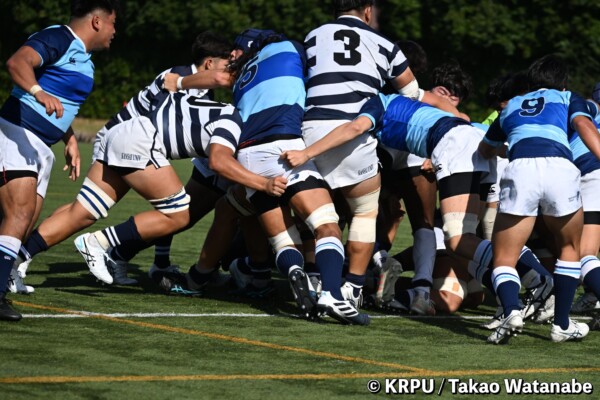 スクラムに関しては、正直、もっと押せると思ってまして、前半のように後半も押し込んでいくことができたと思っています。だが、落ちる場面も結構多くて、最後の方はイーブンというか関大さんに対応されてしまったのが反省です。ただ、今までは押しに行ってしまって8人がバラバラになってプレッシャーを受けたてしまったりがあったが、8人が纏まってまずはスクラムで安定したボールを出していくという所に意識を変えているので、今日の結果は少し進歩したかなと思っています。