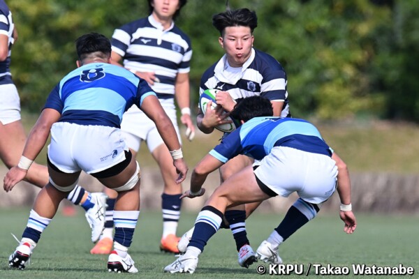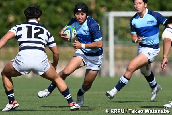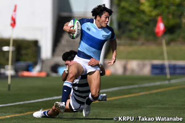 ゲーム序盤は、お互いにキックを多用する中、いくぶん摂南大がスクラムで相手の反則を誘うなどで優位に立ったかのように思われた。