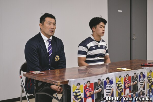 試合の流れは、風上の間(前半)になかなか点を取れずに、立命館さんにターンオーバーから得点されて、関西大学としては良くないパターンになってしまいました。後半は(選手達が)しっかり立て直してやろうとした事には満足しています。