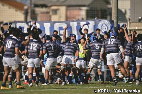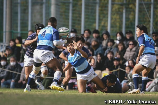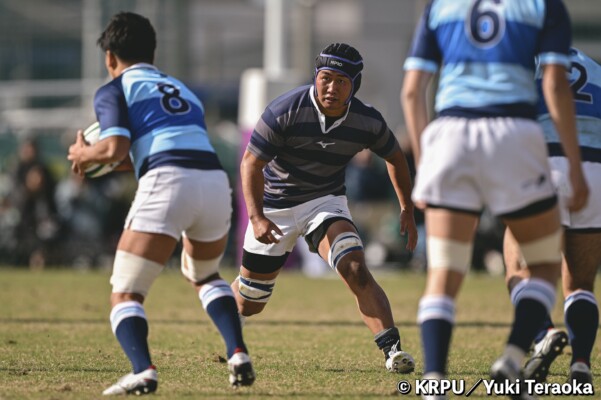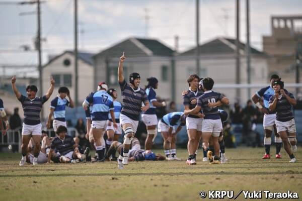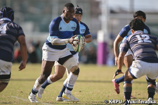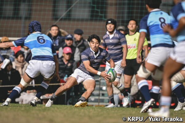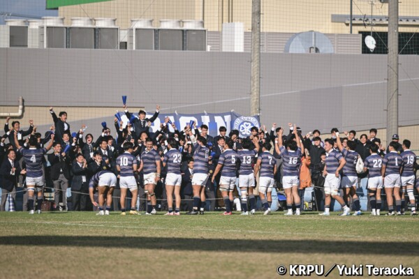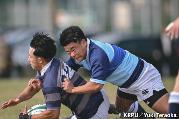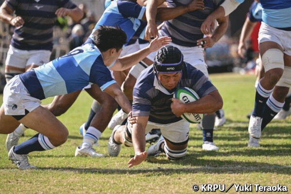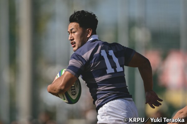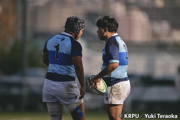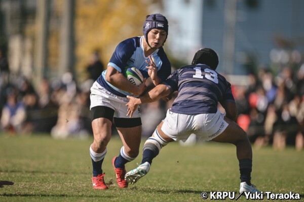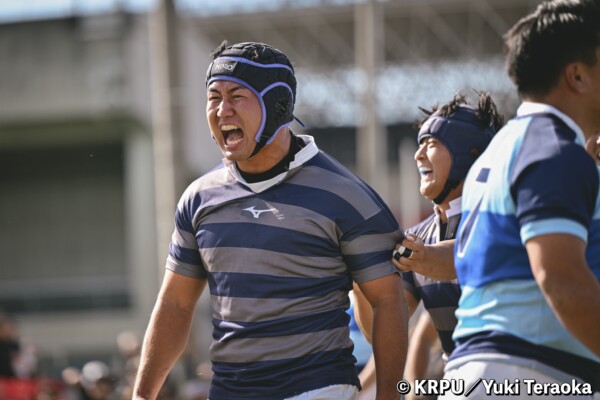 (今日の)試合は本当にタイトな試合で、前半は3点差でしたし、後半は風下でしたので、我々はボールを展開して動かして保持していこうとハーフタイムで話をしました。そういうところでトライに繋がって、最後、摂南大学さんの素晴らしいアタックを1点差で凌ぐことができました。