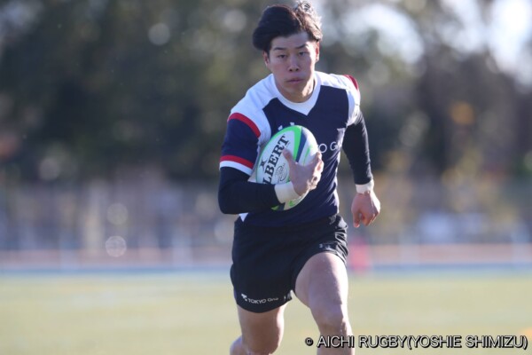 さらに、東京ガスは、相手ペナルティーからキックで前進、前半14分、自陣ハーフウェイライン内側右ラインアウトで、モールを形成から⑨藤林がショートサイドへ持ち出し、⑩西仲隼へパスが渡るとディフェンス裏へグラバーキック、⑭大森広太郎がバウンドを合わせキャッチすると、相手ディフェンスをはねのけ右隅へトライ、15-0とリードを拡げる。