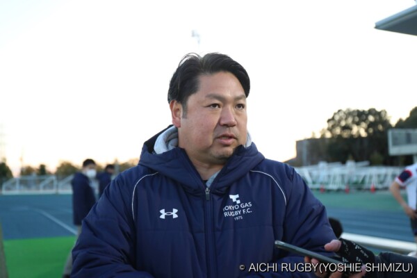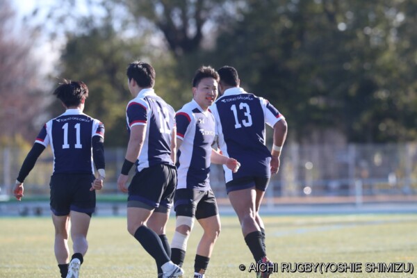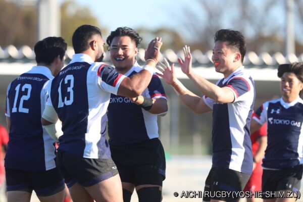 東京ガスは、自陣での相手スクラムでのペナルティーからキックで前進、前半9分、ハーフウェイライン右ラインアウトから、大きくゲインし22m内側へ入ると、パスをつなぎ⑨藤林健太へボールが渡り右中間トライ、10-0とする。