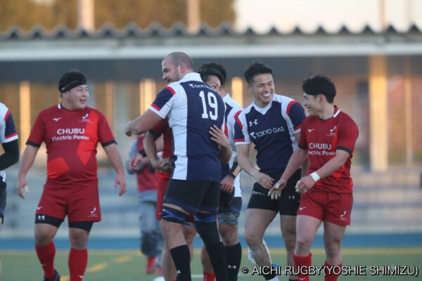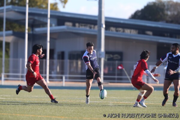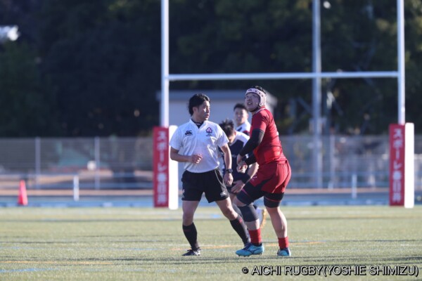 さらに、中部電力は、前半36分、相手陣22m外側中央付近で相手ペナルティーを得ると、ペナルティーゴールを選択、⑩津田が決め、11-22とする。