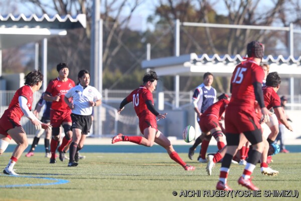 相手陣22m外側中央付近で相手ペナルティーを得ると、ペナルティーゴールを選択、⑩津田貫汰が決め、3-15とする。