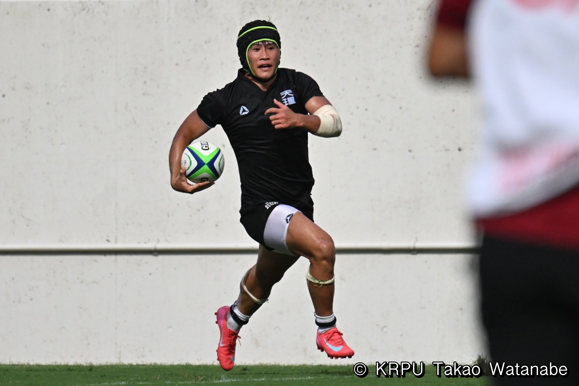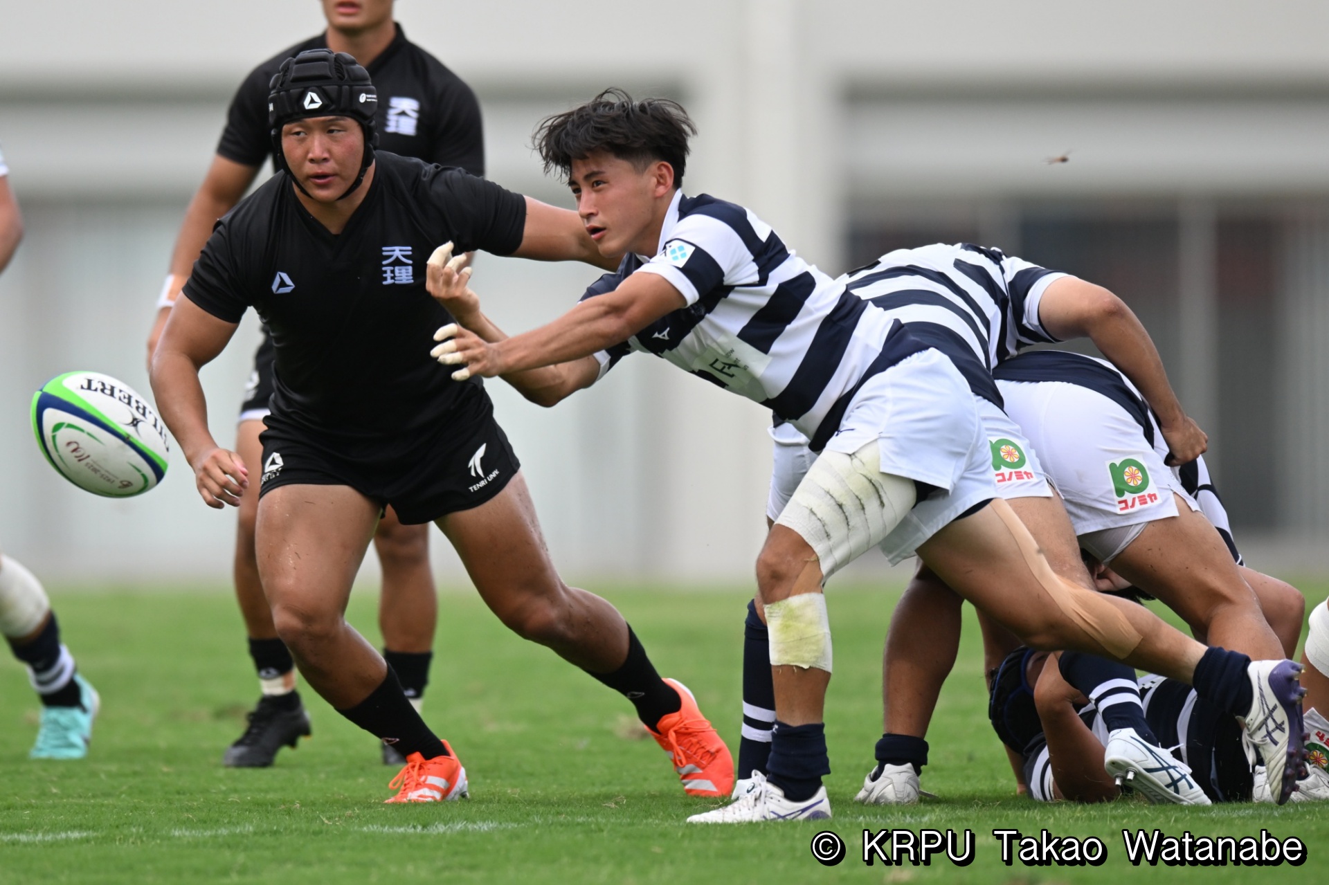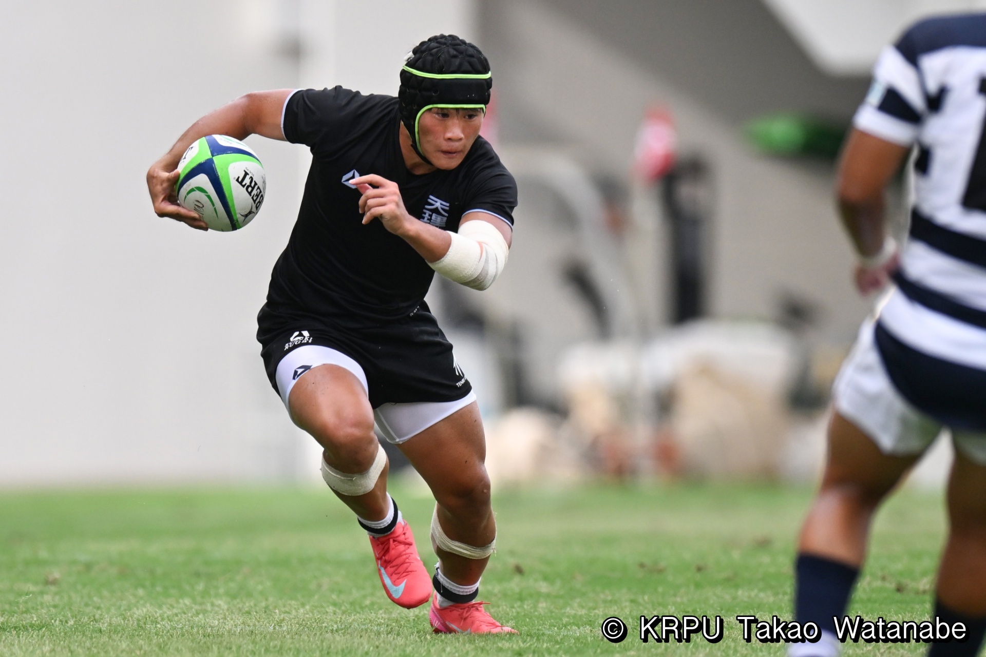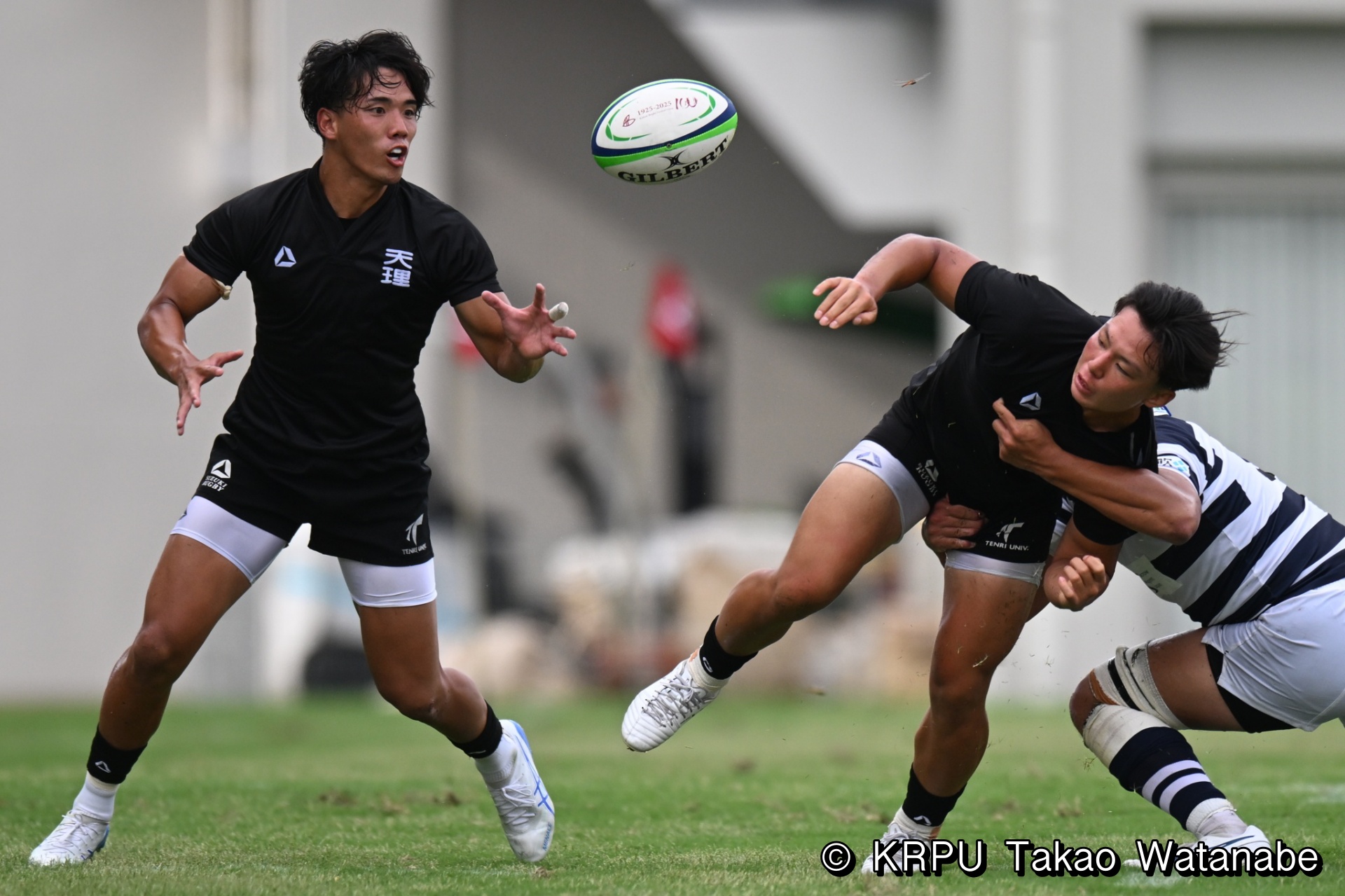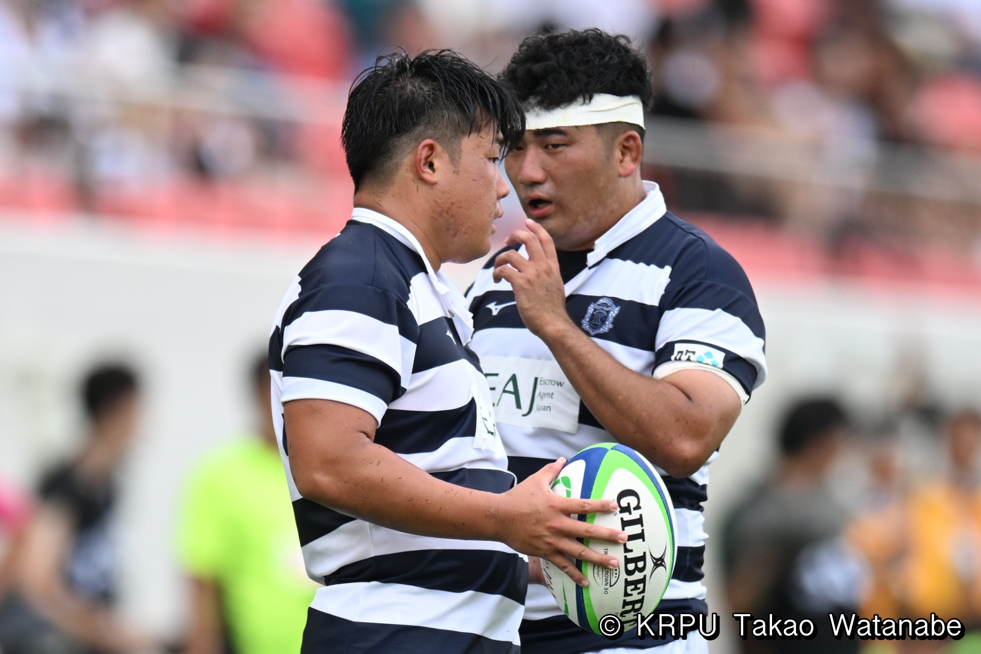 関西大は前半、天理大ゴールに迫るテンポの良い攻撃も見られたが、ミスでチャンスを逸したのが悔やまれる。POMには、随所での的確な判断やゴールキックで勝利に貢献した天理大のSO⑩上ノ坊駿介が選ばれた。