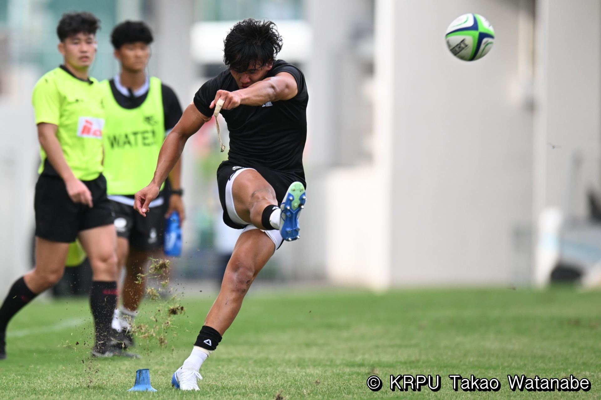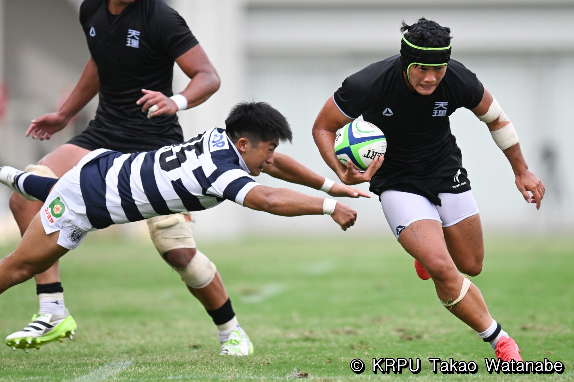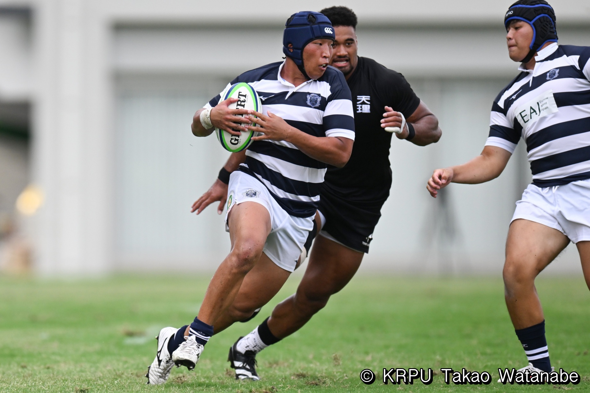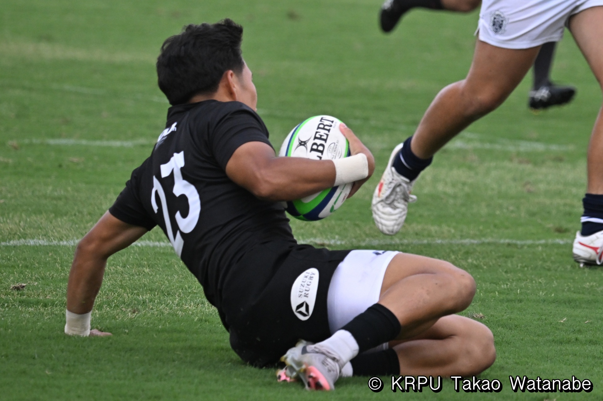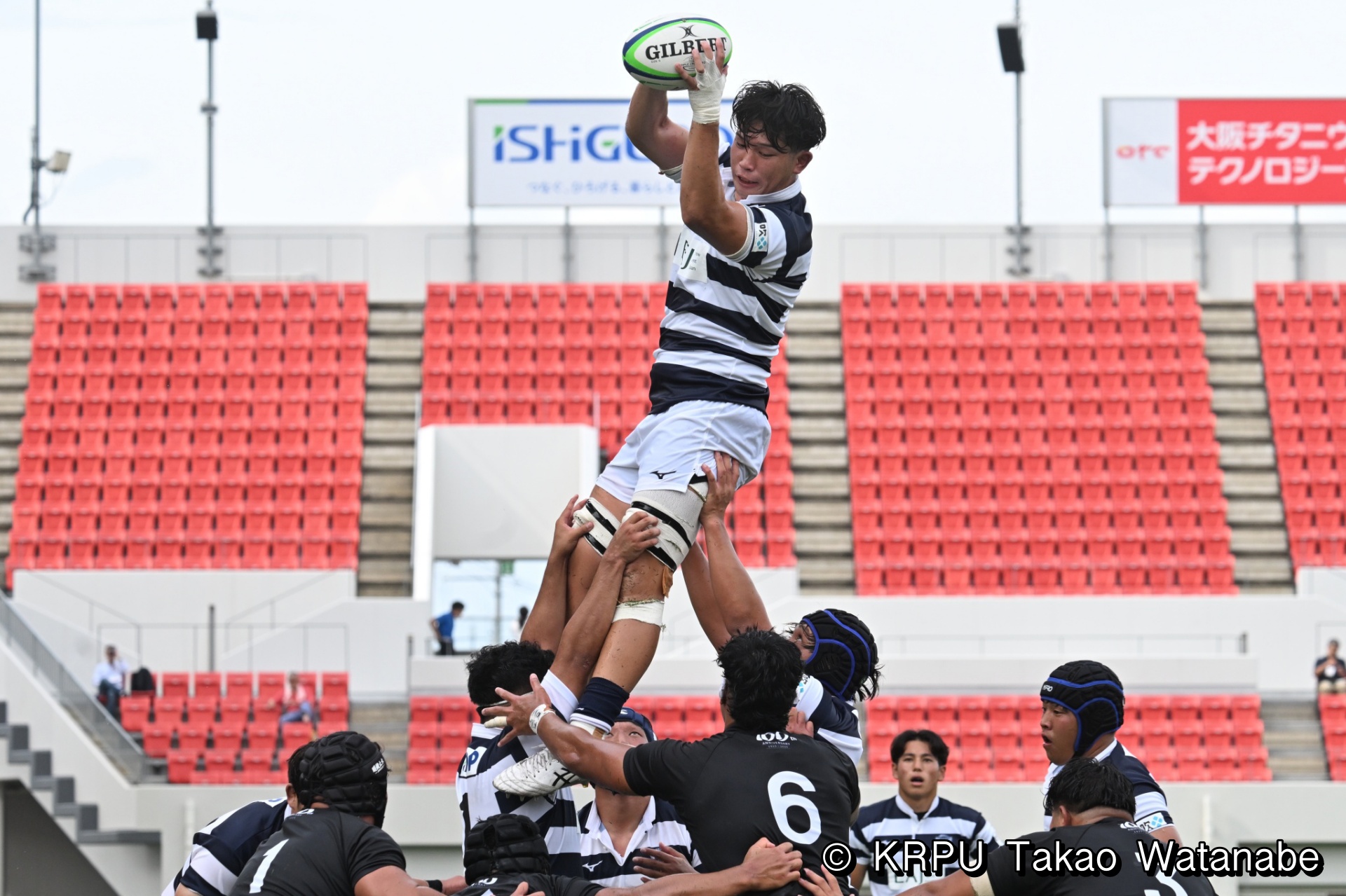 関西大は前半、天理大ゴールに迫るテンポの良い攻撃も見られたが、ミスでチャンスを逸したのが悔やまれる。POMには、随所での的確な判断やゴールキックで勝利に貢献した天理大のSO⑩上ノ坊駿介が選ばれた。