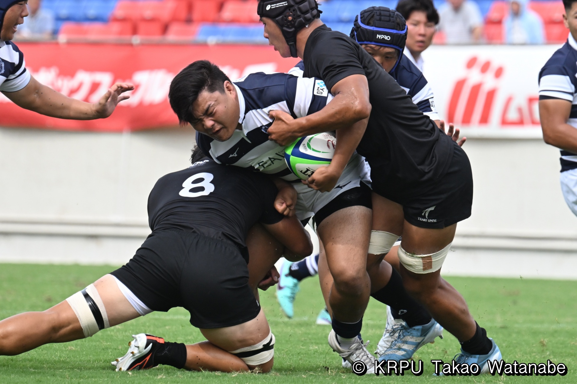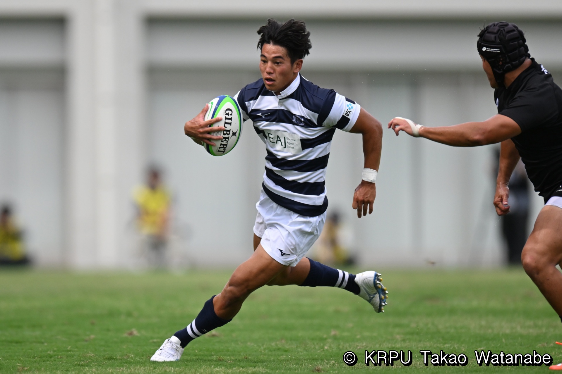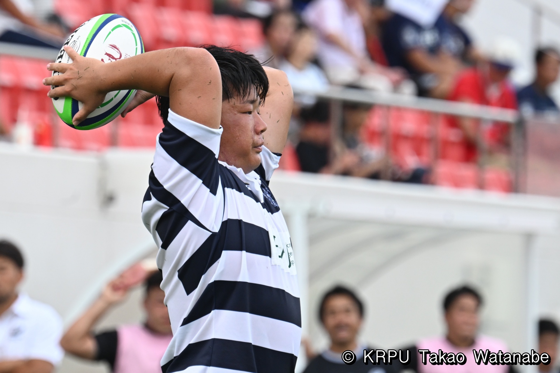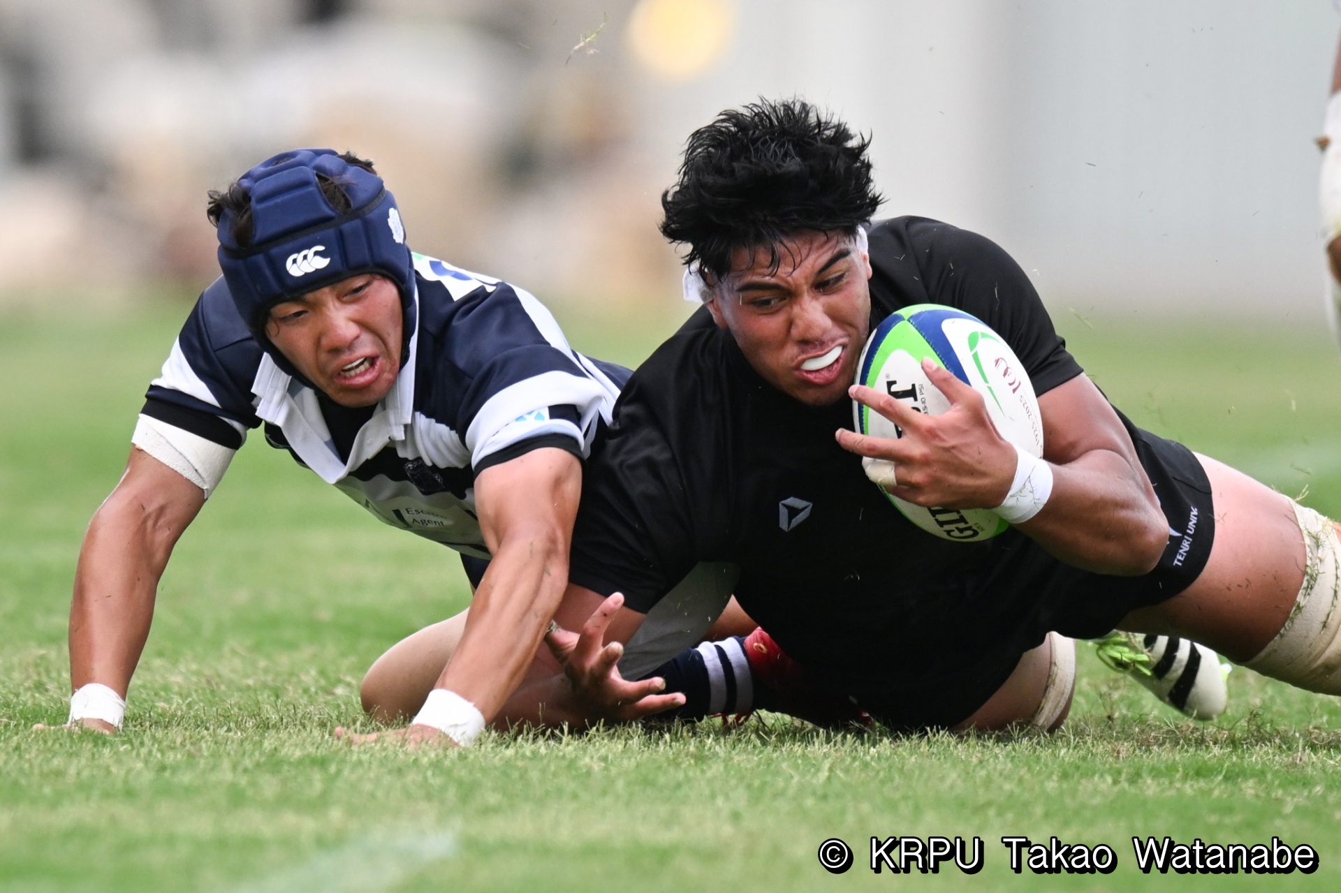 関西大は前半、天理大ゴールに迫るテンポの良い攻撃も見られたが、ミスでチャンスを逸したのが悔やまれる。POMには、随所での的確な判断やゴールキックで勝利に貢献した天理大のSO⑩上ノ坊駿介が選ばれた。