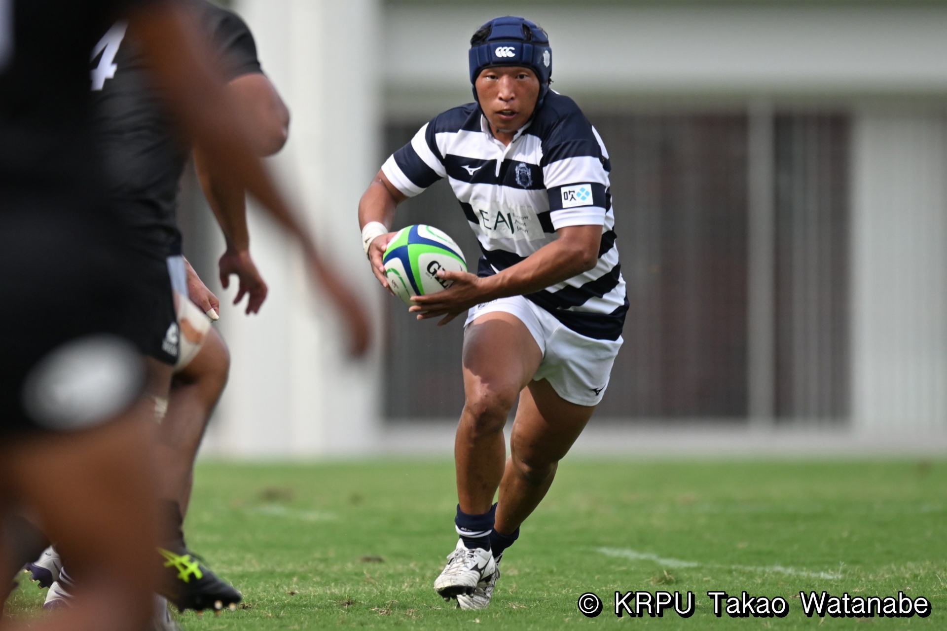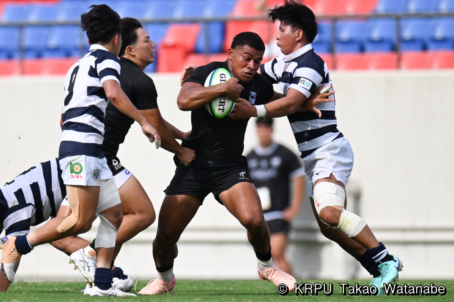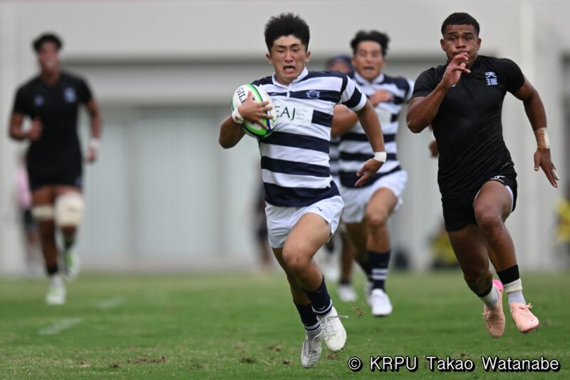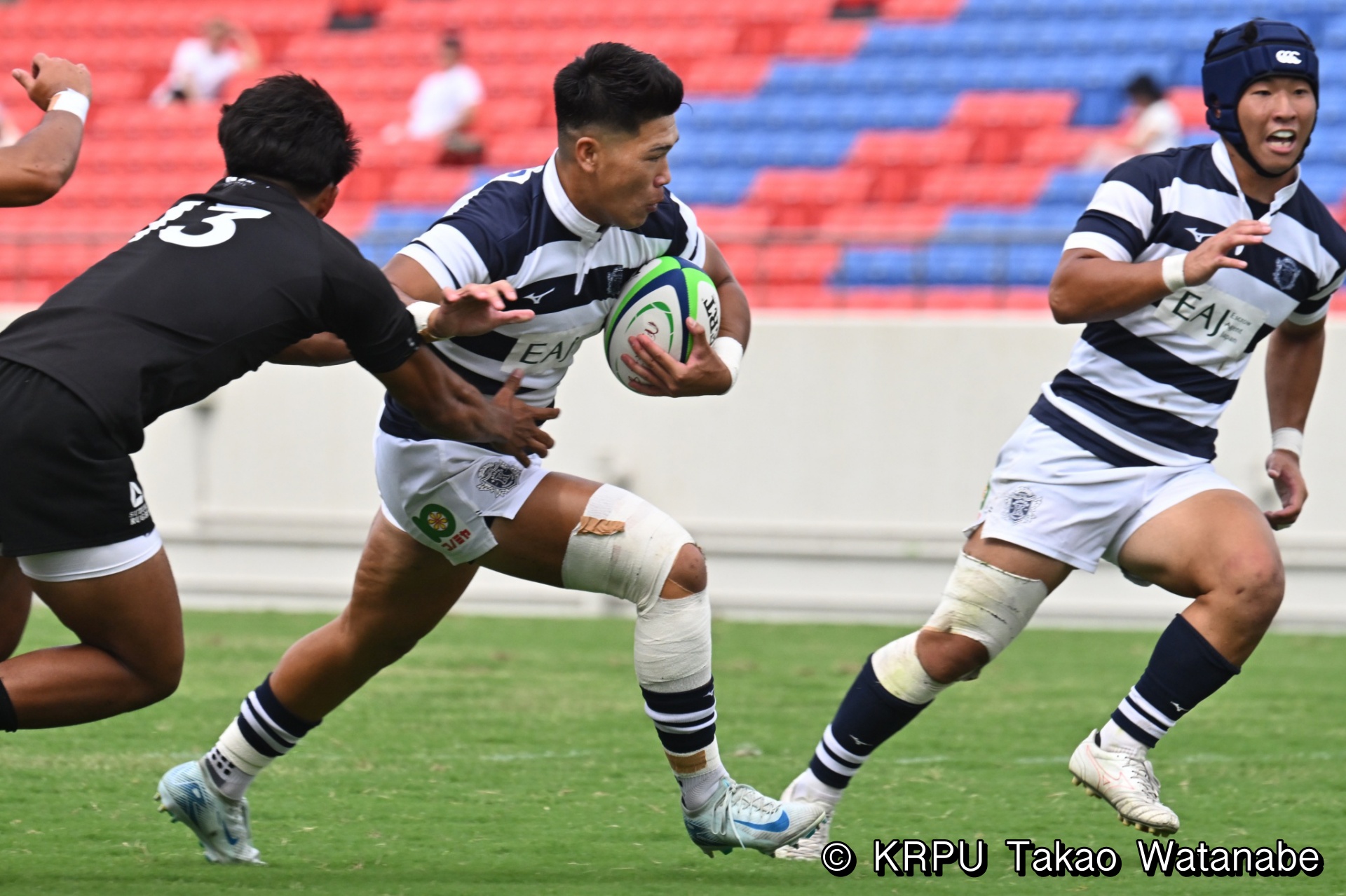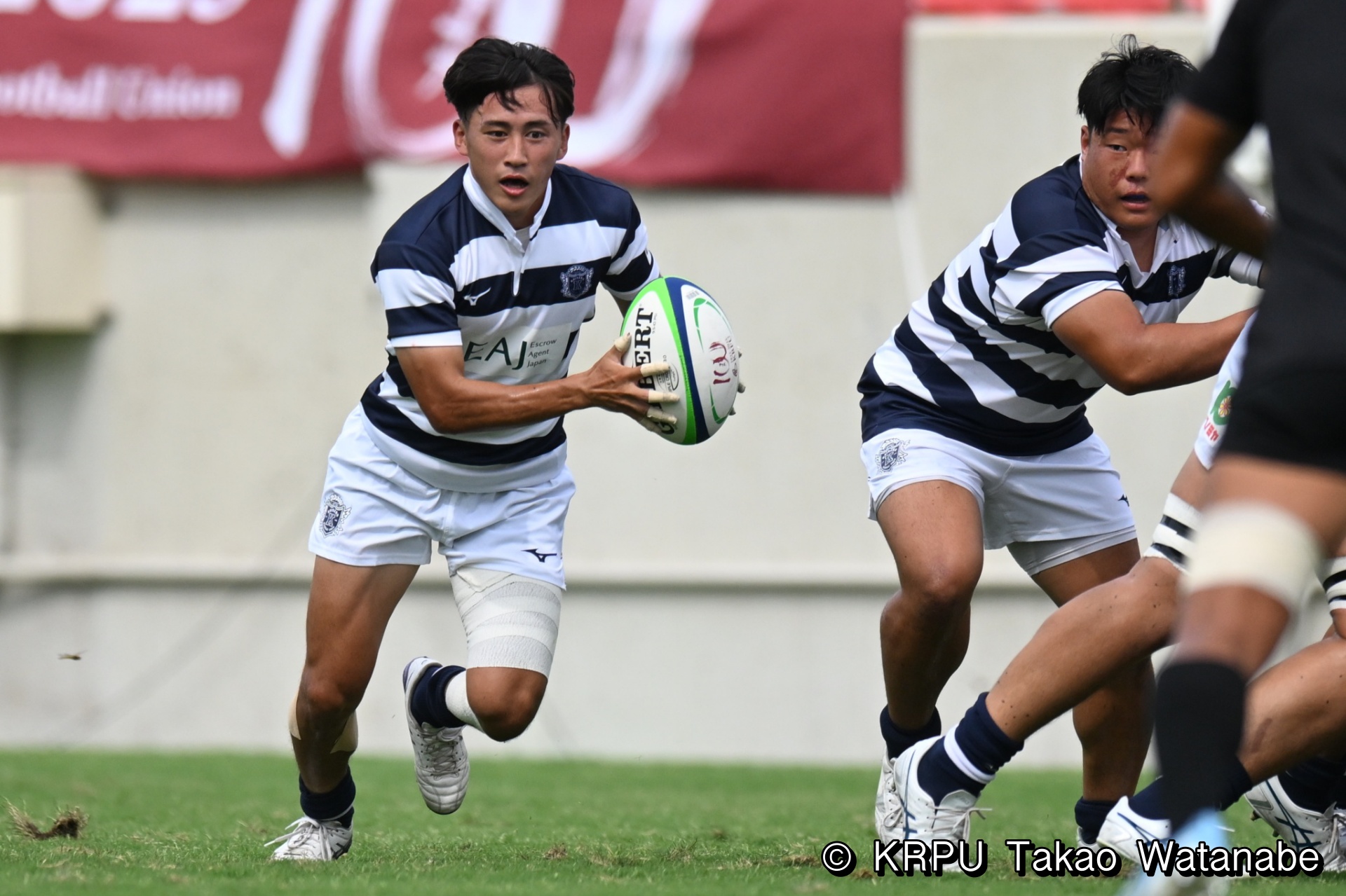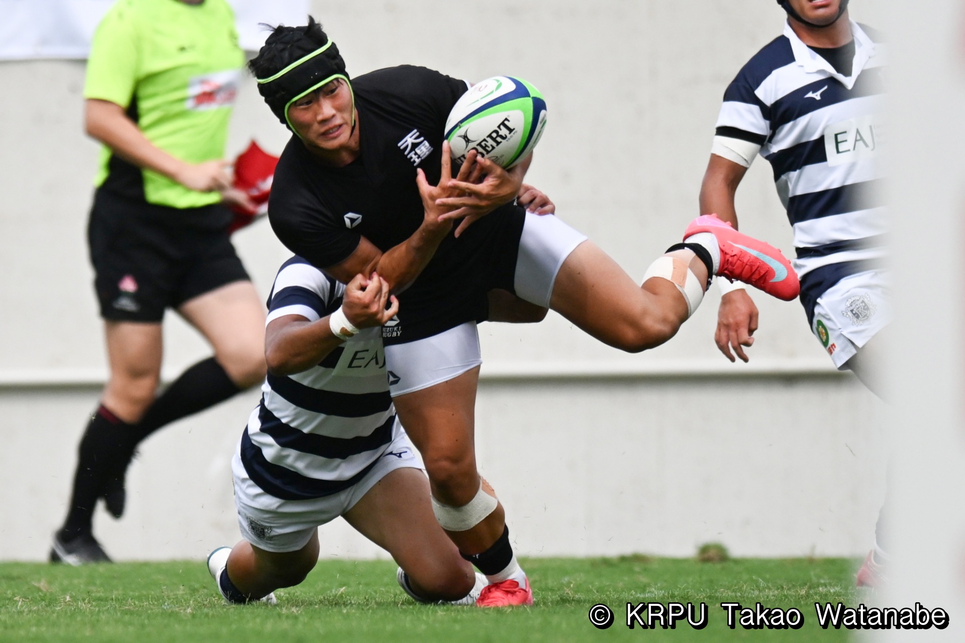関西大は前半、天理大ゴールに迫るテンポの良い攻撃も見られたが、ミスでチャンスを逸したのが悔やまれる。POMには、随所での的確な判断やゴールキックで勝利に貢献した天理大のSO⑩上ノ坊駿介が選ばれた。