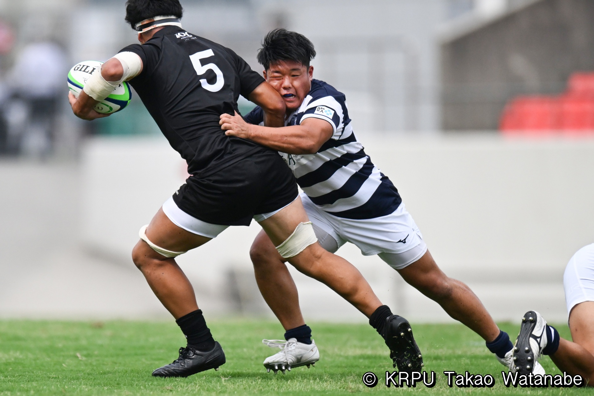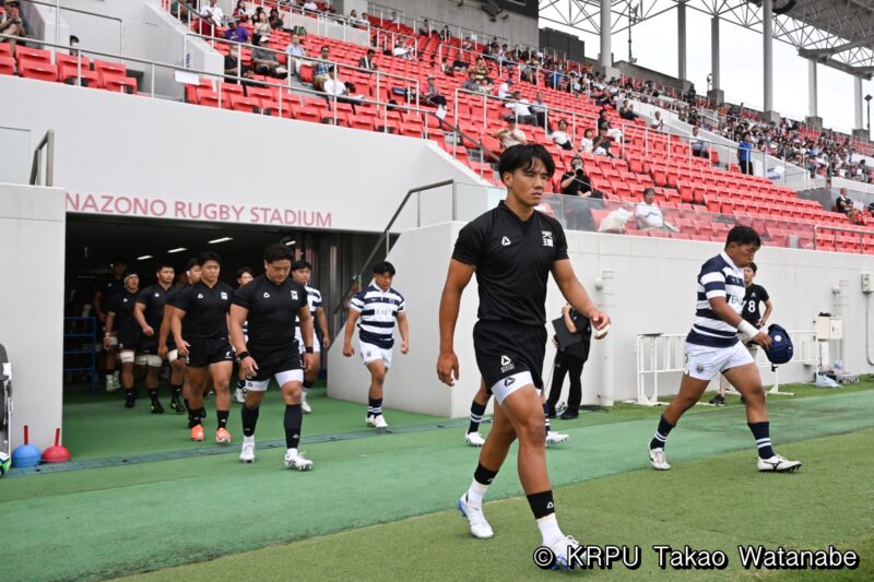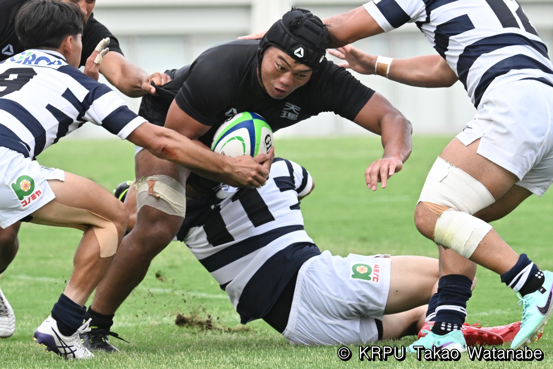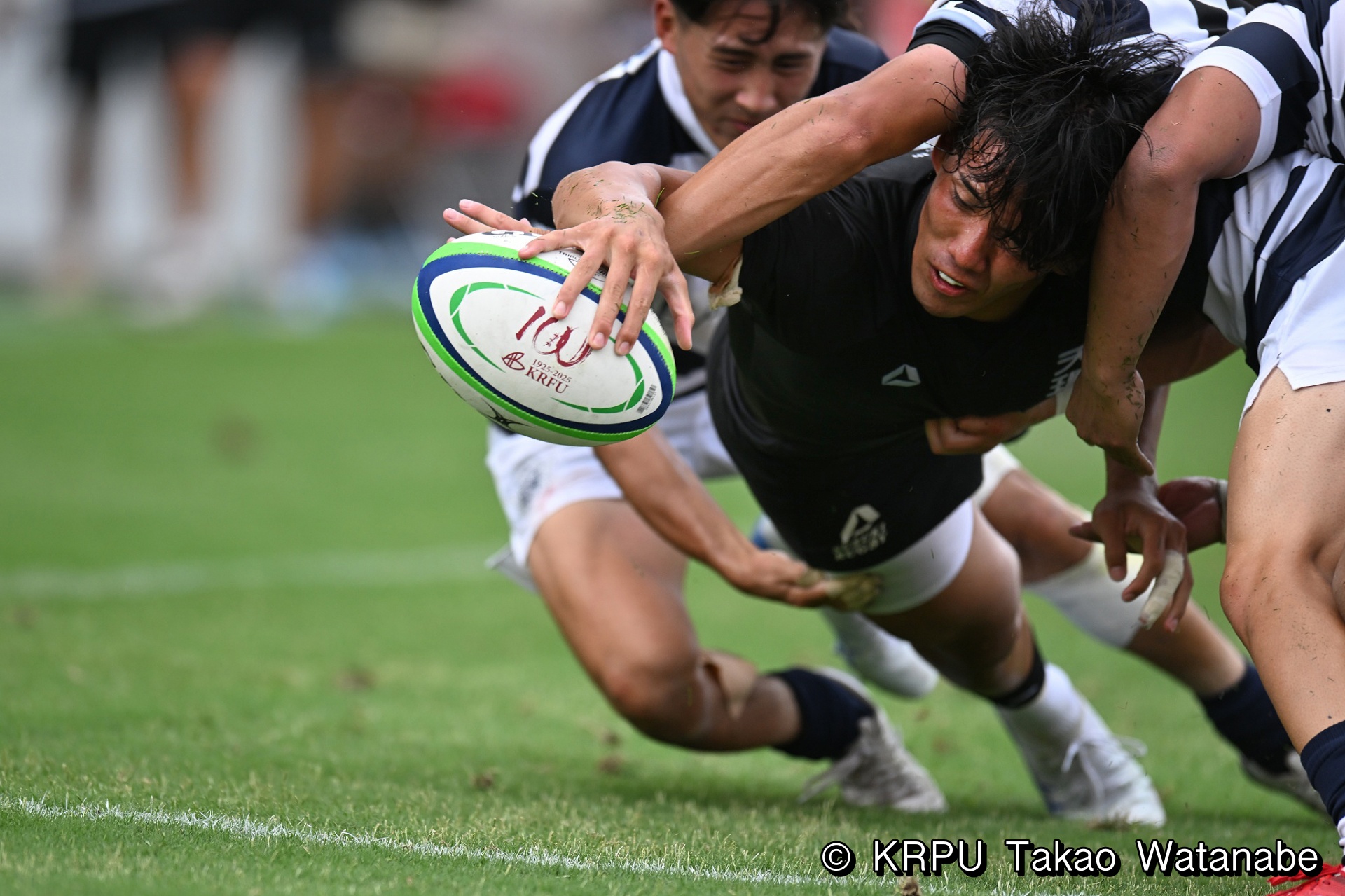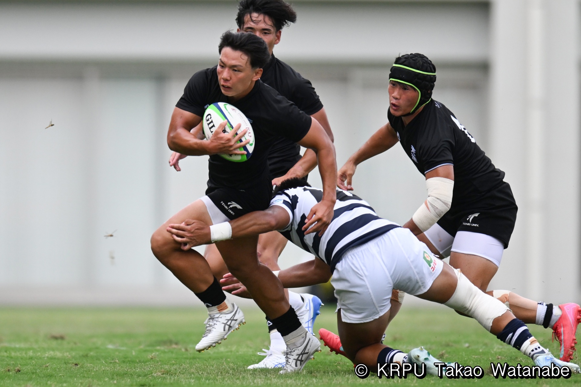 関西大は前半、天理大ゴールに迫るテンポの良い攻撃も見られたが、ミスでチャンスを逸したのが悔やまれる。POMには、随所での的確な判断やゴールキックで勝利に貢献した天理大のSO⑩上ノ坊駿介が選ばれた。