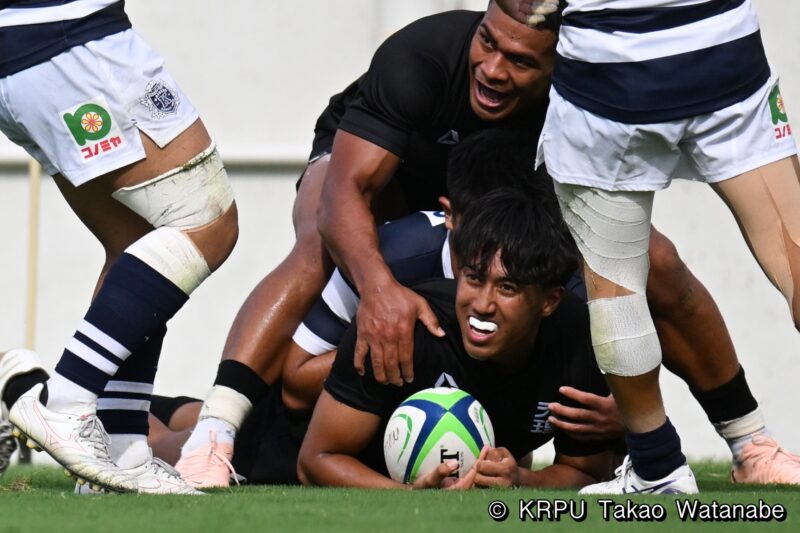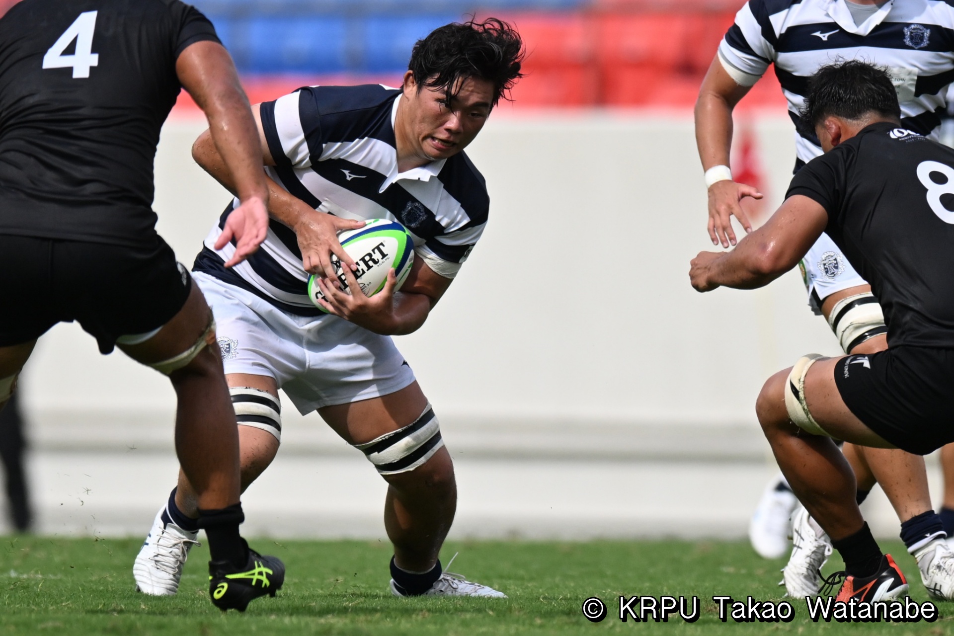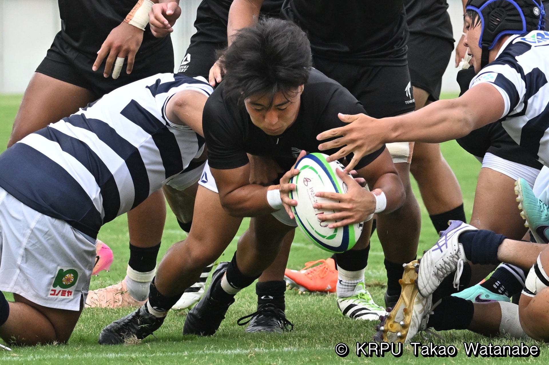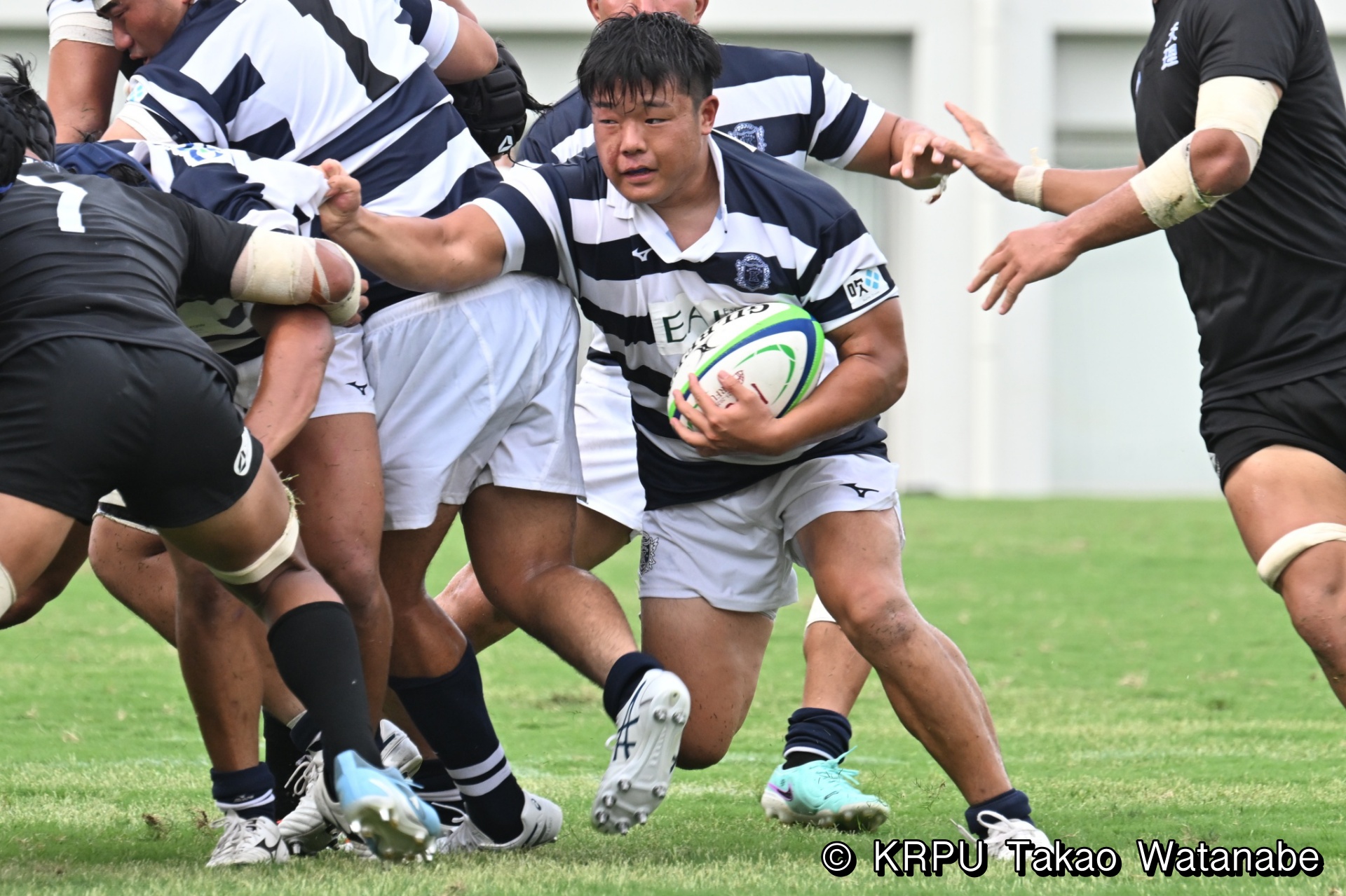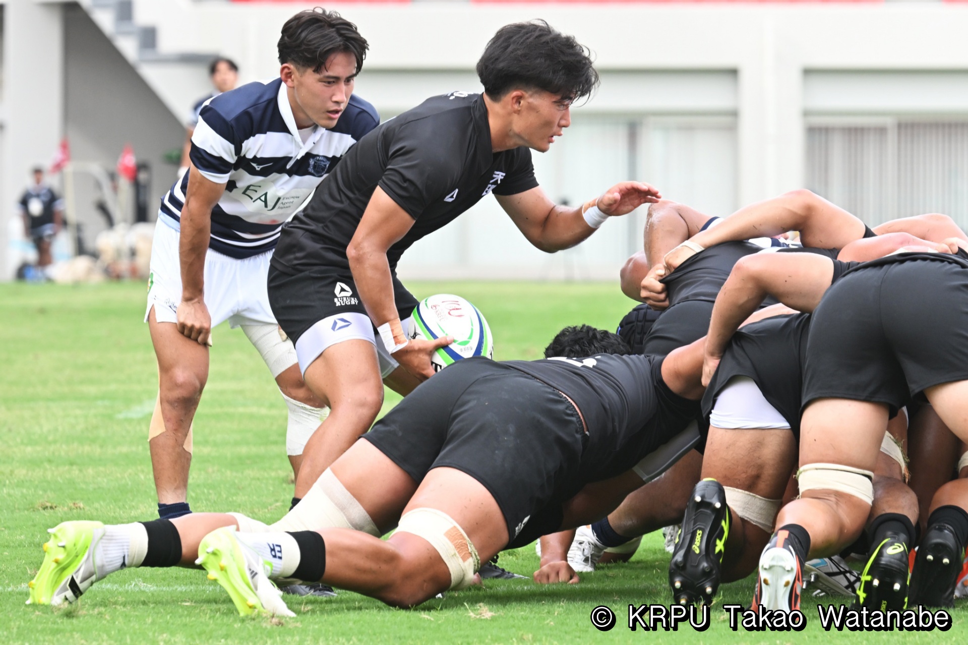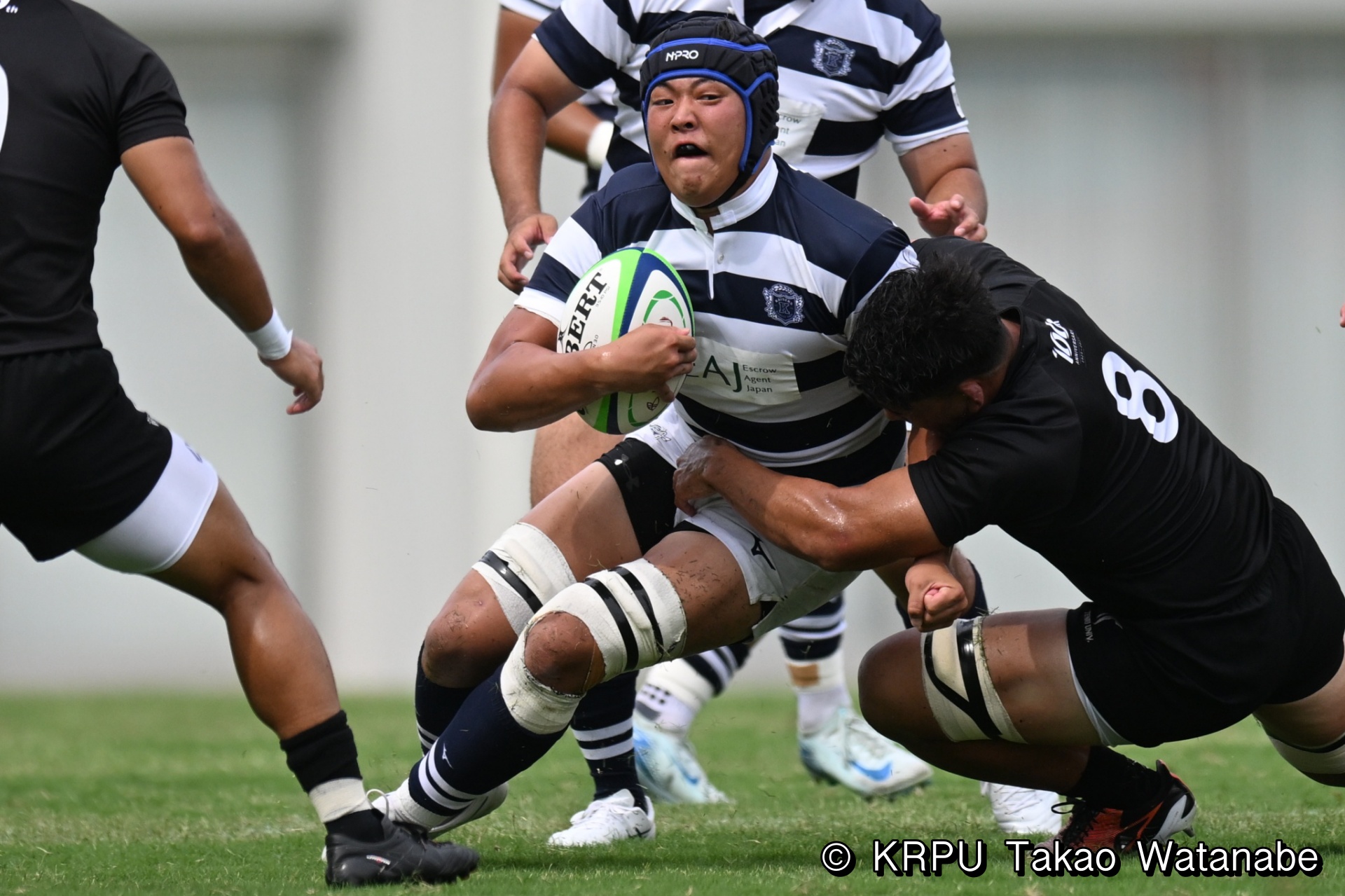 関西大は前半、天理大ゴールに迫るテンポの良い攻撃も見られたが、ミスでチャンスを逸したのが悔やまれる。POMには、随所での的確な判断やゴールキックで勝利に貢献した天理大のSO⑩上ノ坊駿介が選ばれた。
