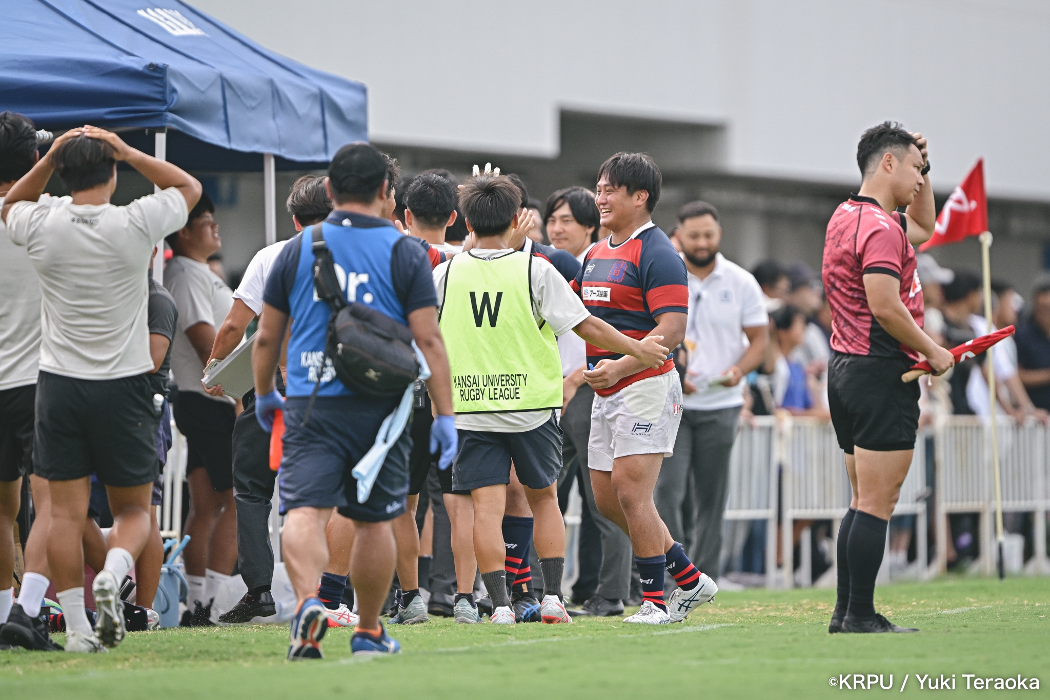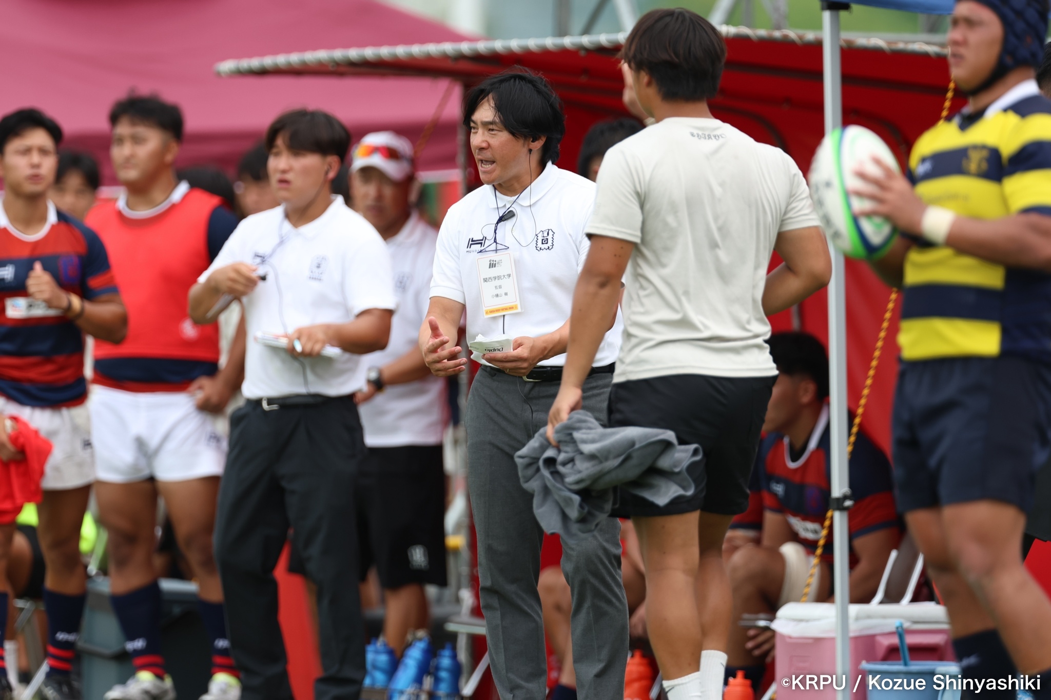 後半は風上になったので、しっかりエリアを取りながら進める想定でしたが、関西学院大学さんの後半の集中力に制されたと感じています。シンビンを取られたり、モールで制されたりする中で、セットプレーを制することが関西で勝っていくために非常に重要だと改めて感じました。ディフェンスは、一人少ないところをうまく突かれ、キーマンが抜けるしんどさが出たと思います。選手は一つ一つの接点や局面でディフェンスしようという姿勢を保ってくれていたので、点差が開く中でも跳ね返す力は磨けていると感じました。まだ学生ですのでパニックに陥ることもあると思います。我々マネジメント側が、選手交代を含めてメッセージを適切に伝えることが大事だと反省しました。