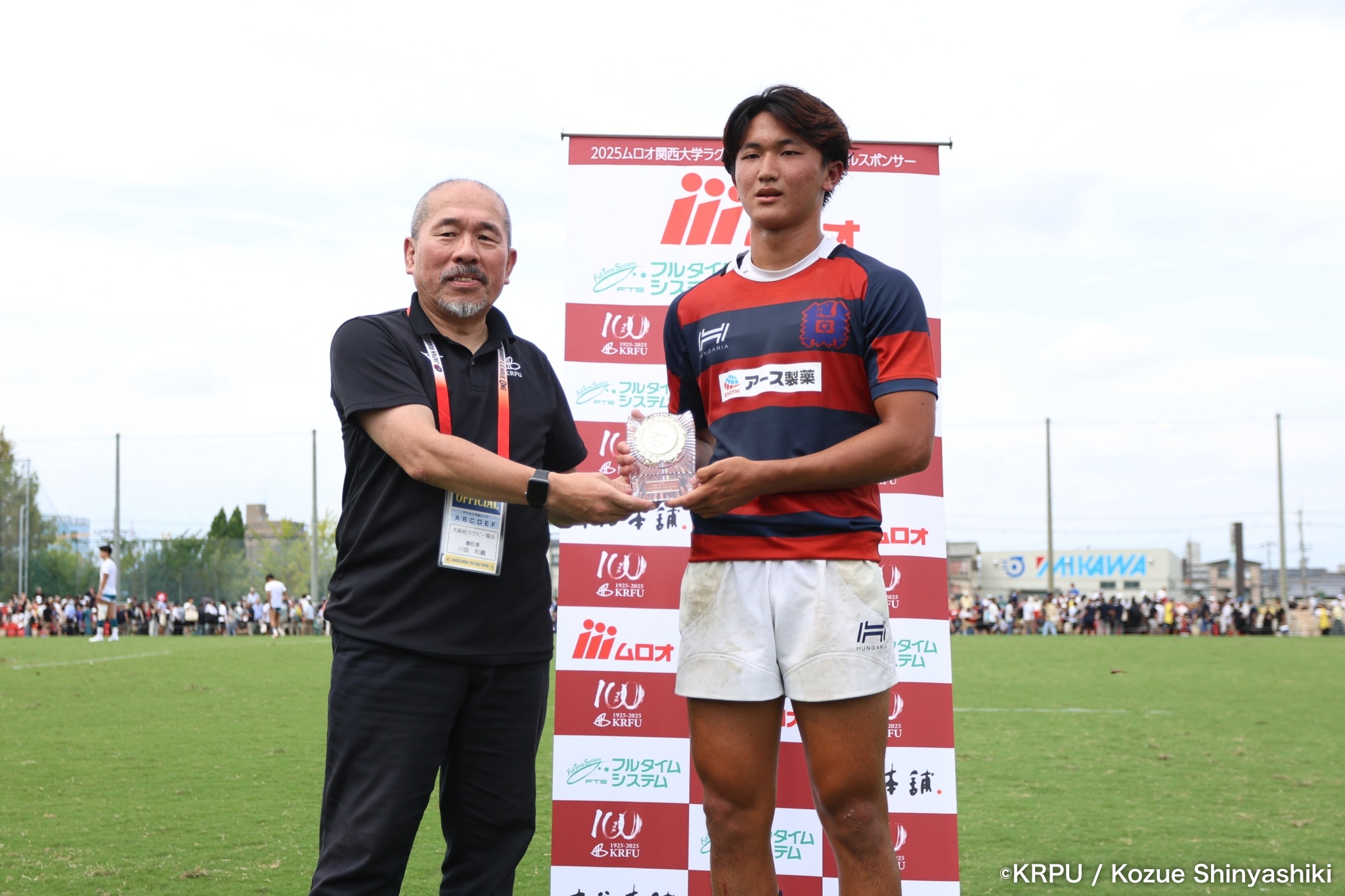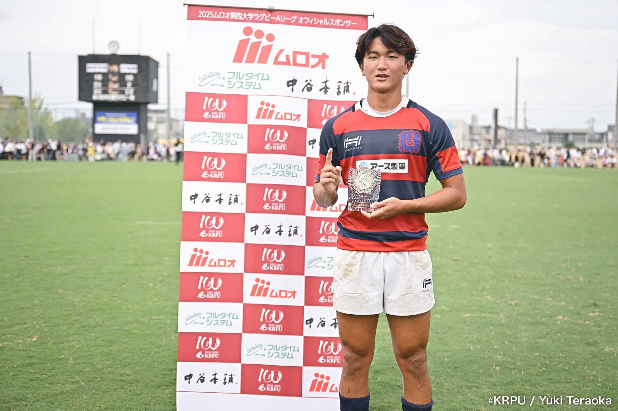 立命は、風上で有利と思われた後半序盤に先制できなかったのが痛かった。ここで先制できていれば、展開は違ったかもしれない。両チームとも接点での激しさは、優勝を目指すチームらしいものだった。一方で、計3枚のシンビンがあり、少なからず得点に影響。次戦に向け、規律面の修正に期待したい。POM(Player of the Match)は、キックでチームの勝利に貢献した関学1年生のSO⑩新井竜之介が選ばれた。