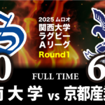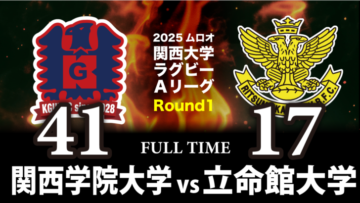 立命も最後の意地を見せ、CTB⑫中村が中央にトライ。㉒初田航汰のゴールで41-17とし、ここでノーサイド。関学が春季王者・立命から貴重な勝ち点5を獲得した。
