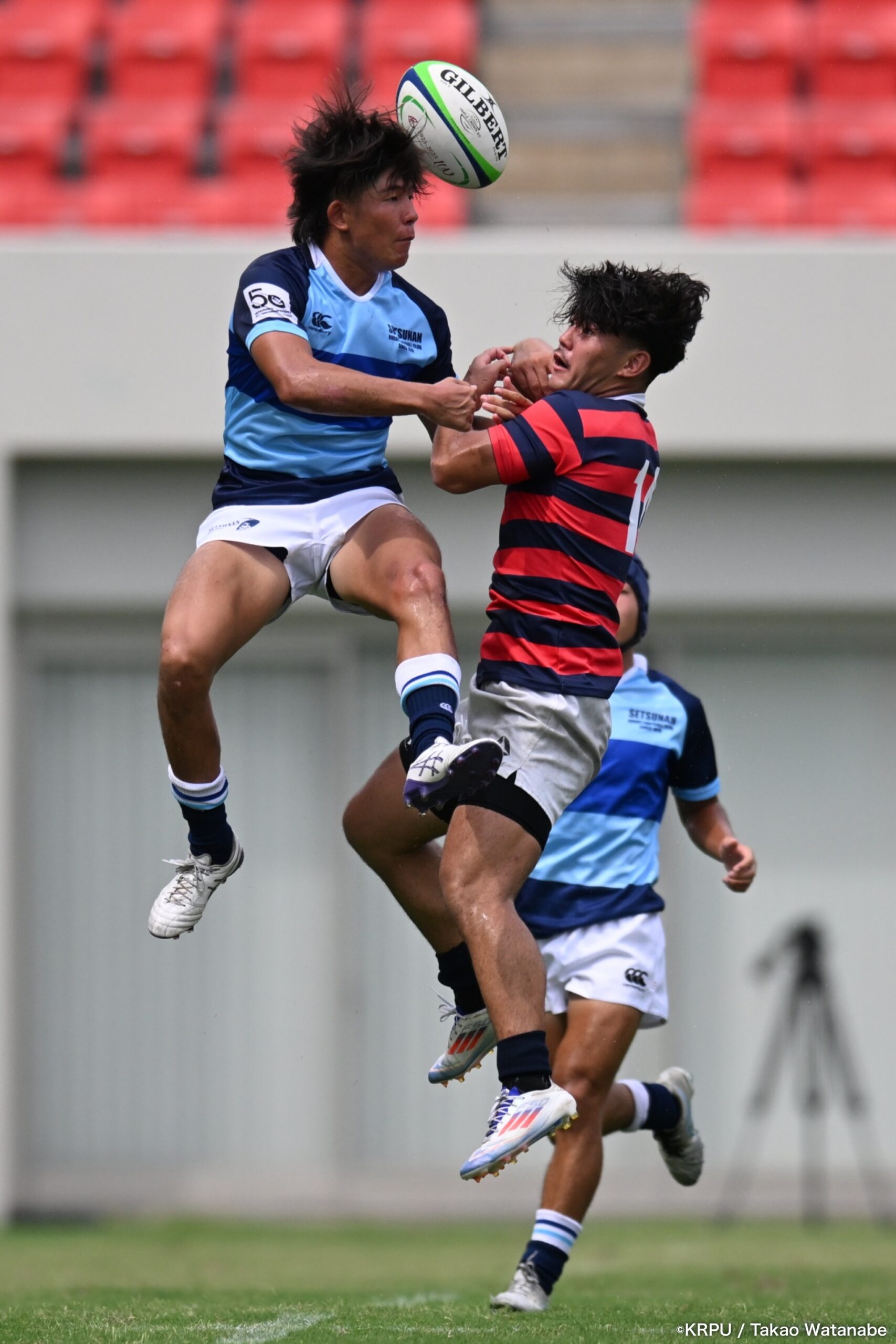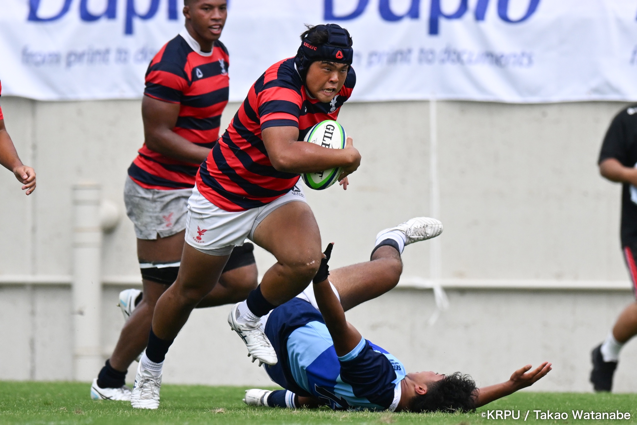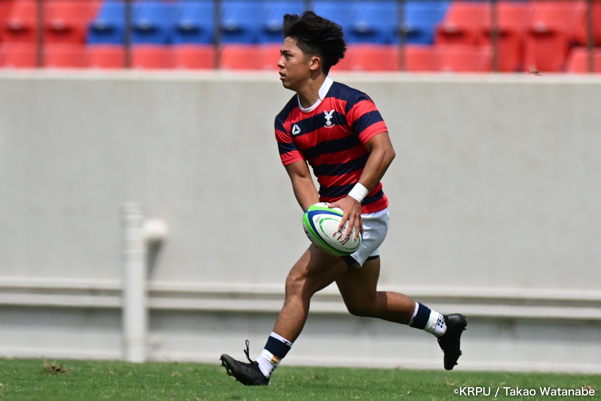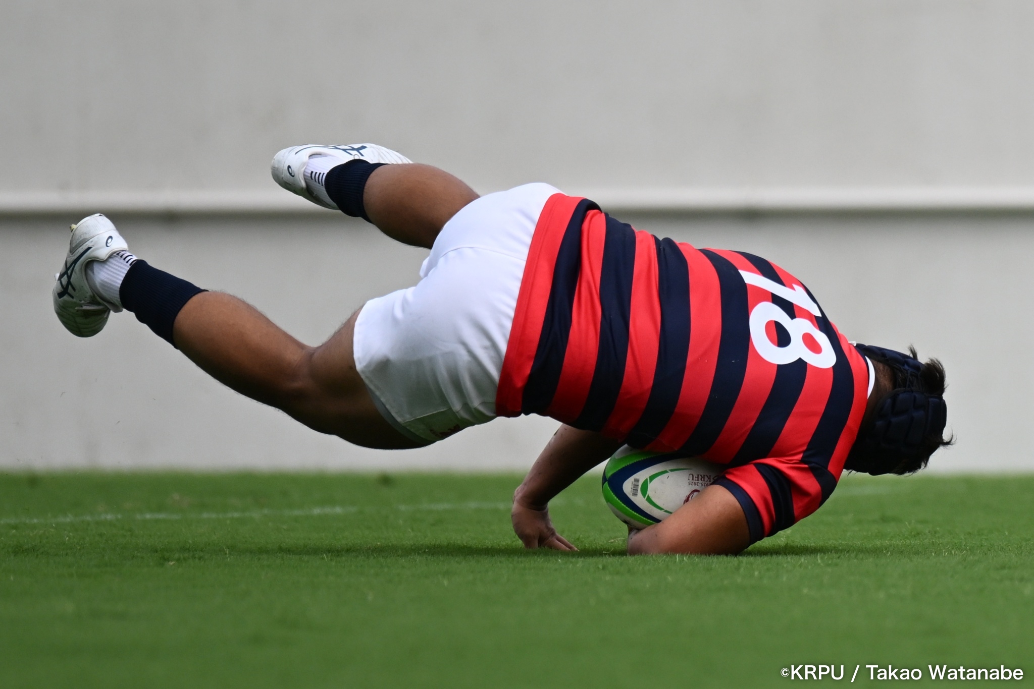 33分、敵陣15m右ラインアウトからNo.8⑧シオネ・ポルテレが中央を突破し、CTB⑫奈須のオフロードを受けたFL⑥平野龍がゴールポスト左へトライ。GはSH⑨高木が成功、0-31。
