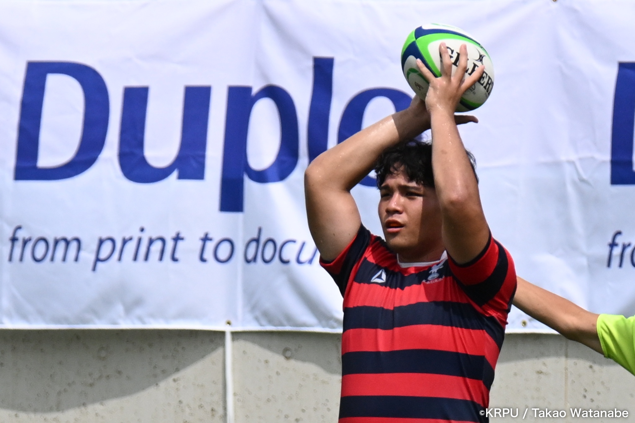 11分、京産大が敵陣まで攻め込み、SH⑨高木からSO⑩吉本、FL⑦伊藤森心(主将)へ。攻撃を継続し、最後はLO⑤マヘが左中間にトライ。G不成功、0-17。