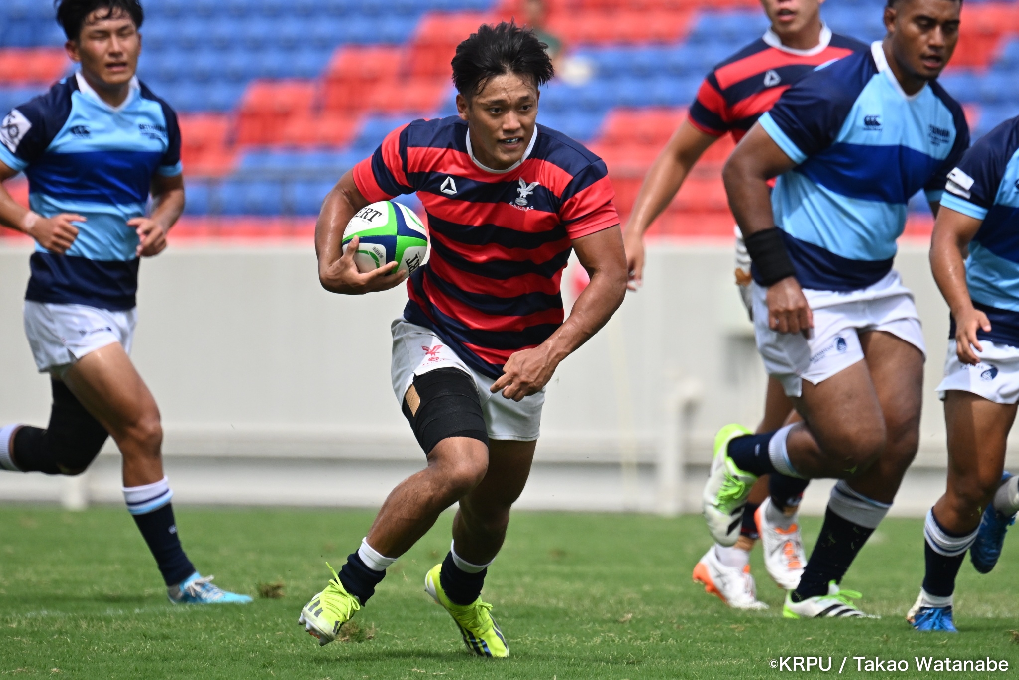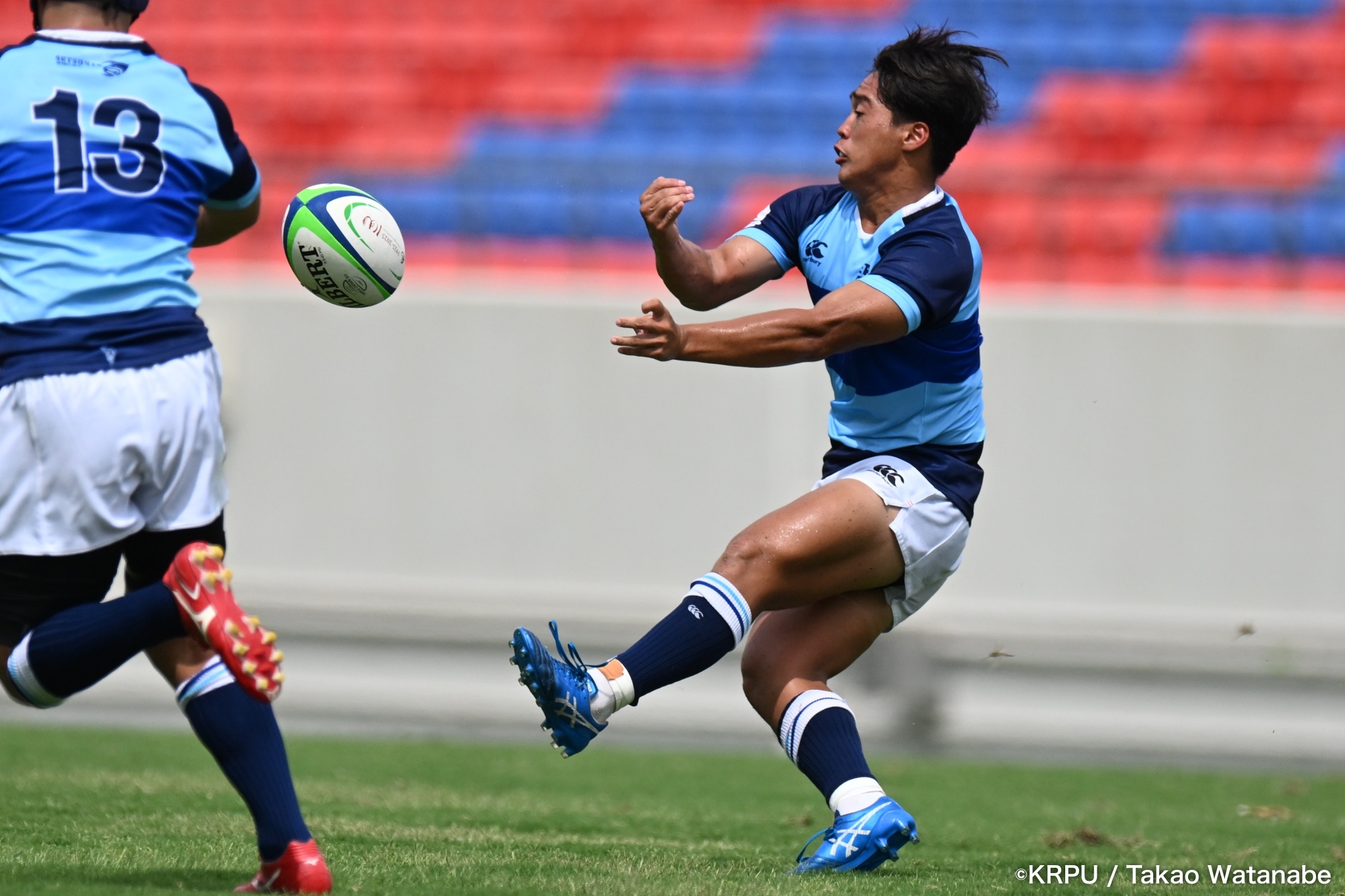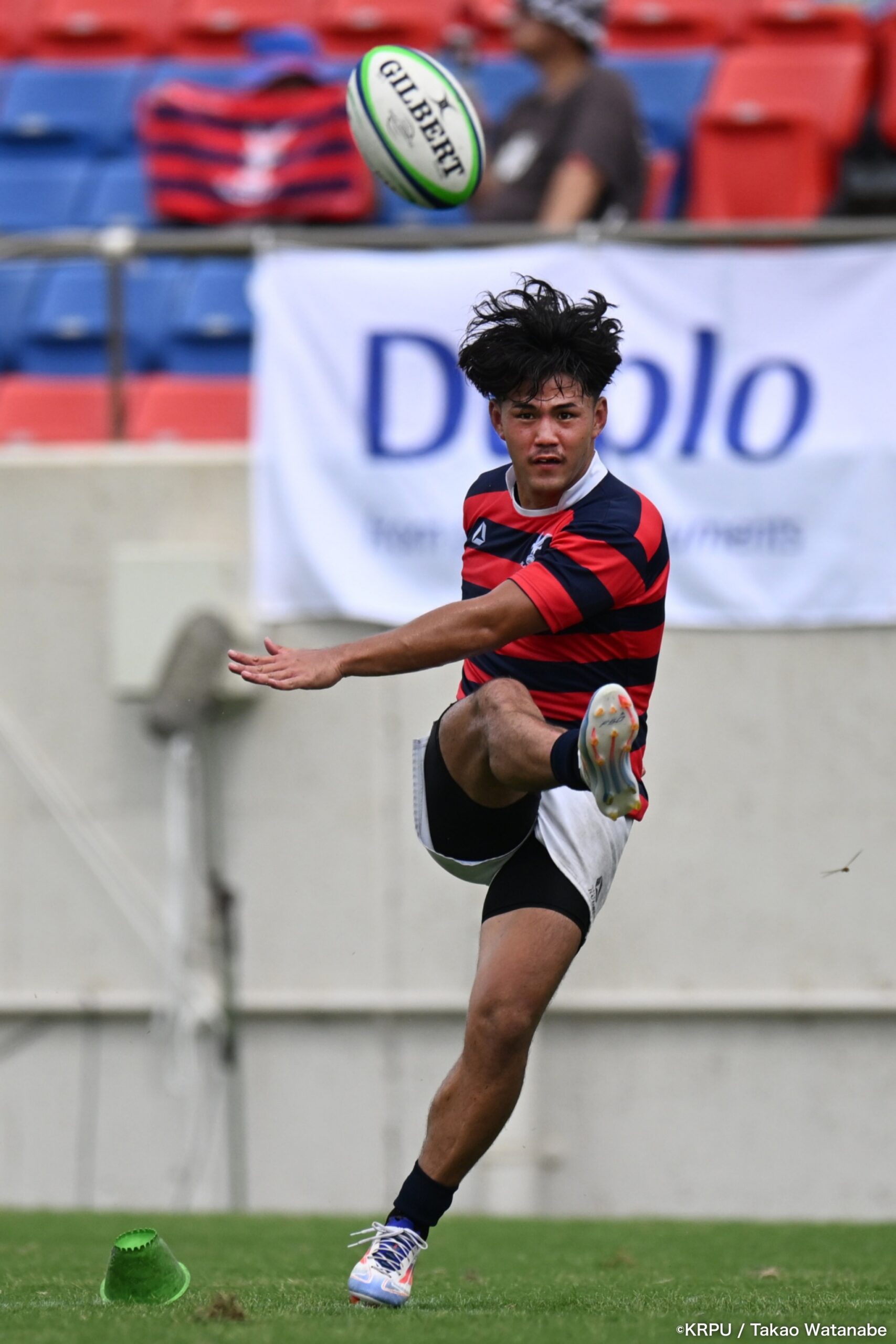 POMには、正確なキックで敵陣まで攻め込み、攻撃でも起点となるパスをつなぎ、勝利に大きく貢献した京都産業大学副キャプテン、SO⑩吉本大悟が選ばれた。