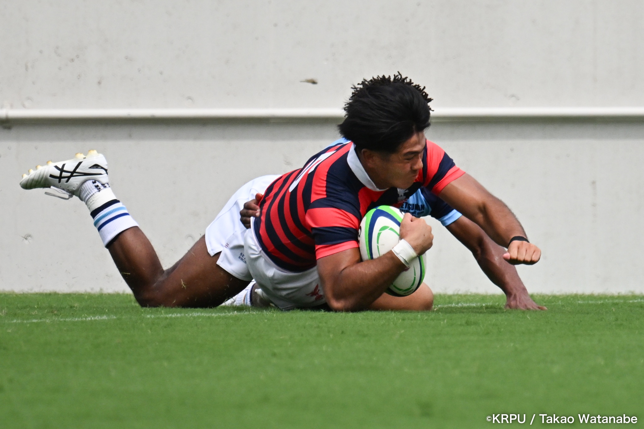 40分、京産大FB⑮宮里が左中間にトライ。G不成功、0-60。