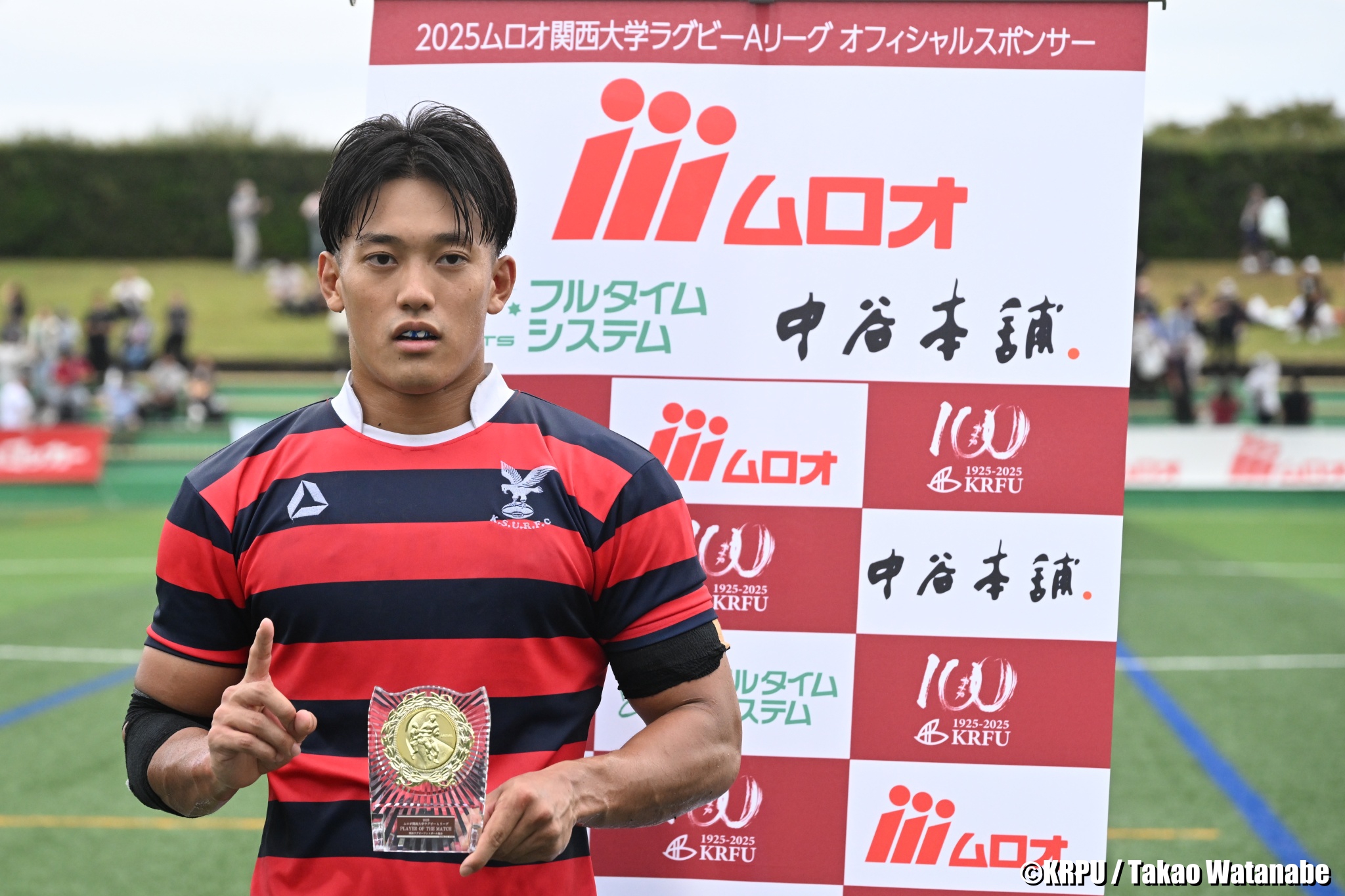POMには、勝負を決めるトライなど攻守に活躍した京都産業大学CTB⑫奈須貴大が選ばれた。