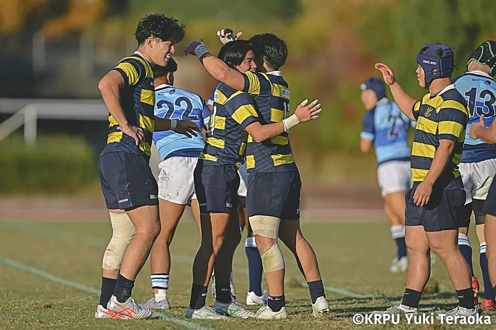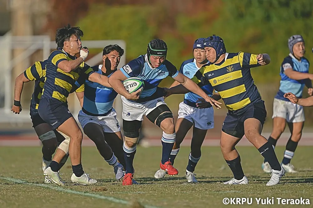 関西大学ラグビーAリーグ第6節の最終戦は、風のない秋晴れで17℃の絶好のコンディションの中、現在6位の立命館大学(立命大)に対して現在8位の摂南大学(摂南大)が挑むかたちの一戦となった。両チームともAリーグ残留に向けて負けられない戦いで、特に摂南大は今季初勝利を目指した。