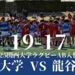 後半も序盤は膠着状態が続くが、立命大は15分に⑭御池のビッグゲインからLO⑲生島拓海がトライ、19分にも⑫中村のブレイクからSO㉒川口慧大(GK成功)のトライで勝負ありか。(43-7)