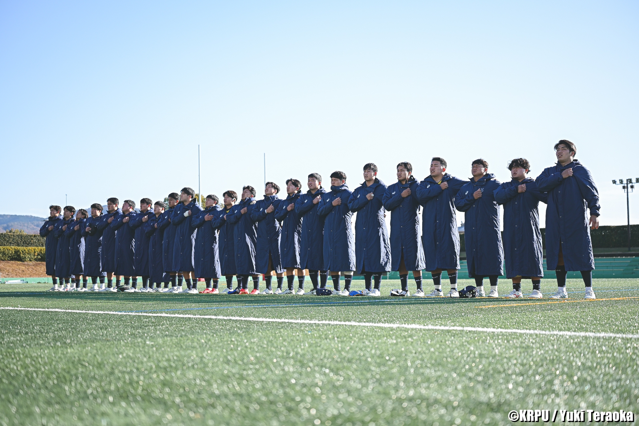 本日もありがとうございました。立命館大学としては今シーズン望んだ形ではないところでの難しいゲームで、島キャプテンを中心に4年生がまとまってくれて、最後まで踏ん張ってくれました。またスタンドから応援してくれた他の部員たちがゲームを引き締めてくれました。