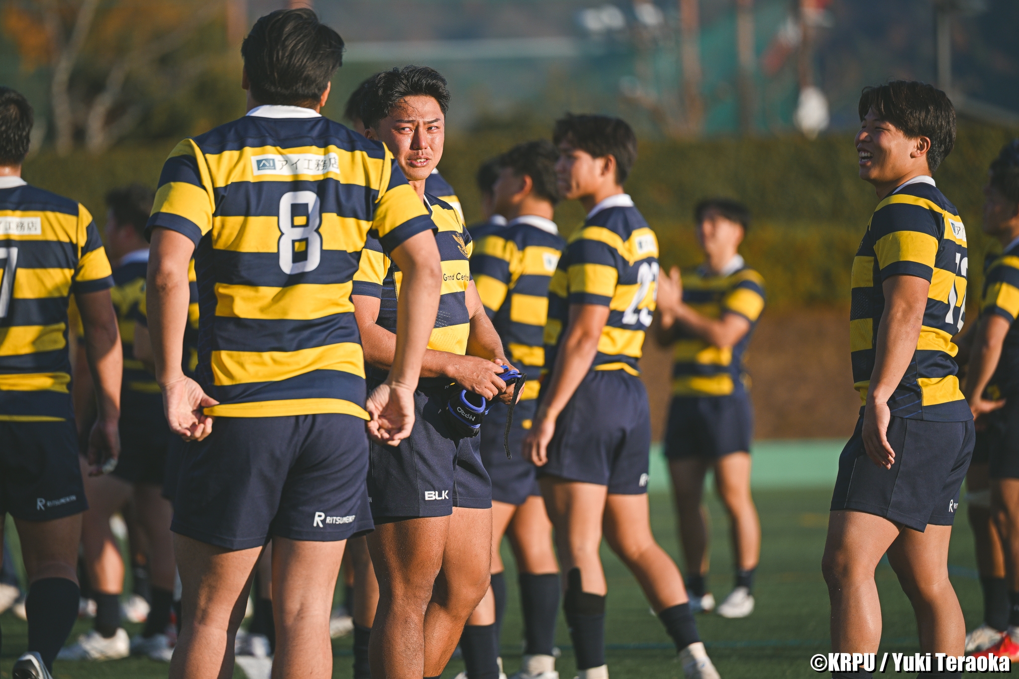 立命大も29分にFL⑥榎本匡志、37分にCTB⑬西村長が追加トライ(いずれもGK成功)と点差をさらに引き離してゲームが終了した。(57-21)