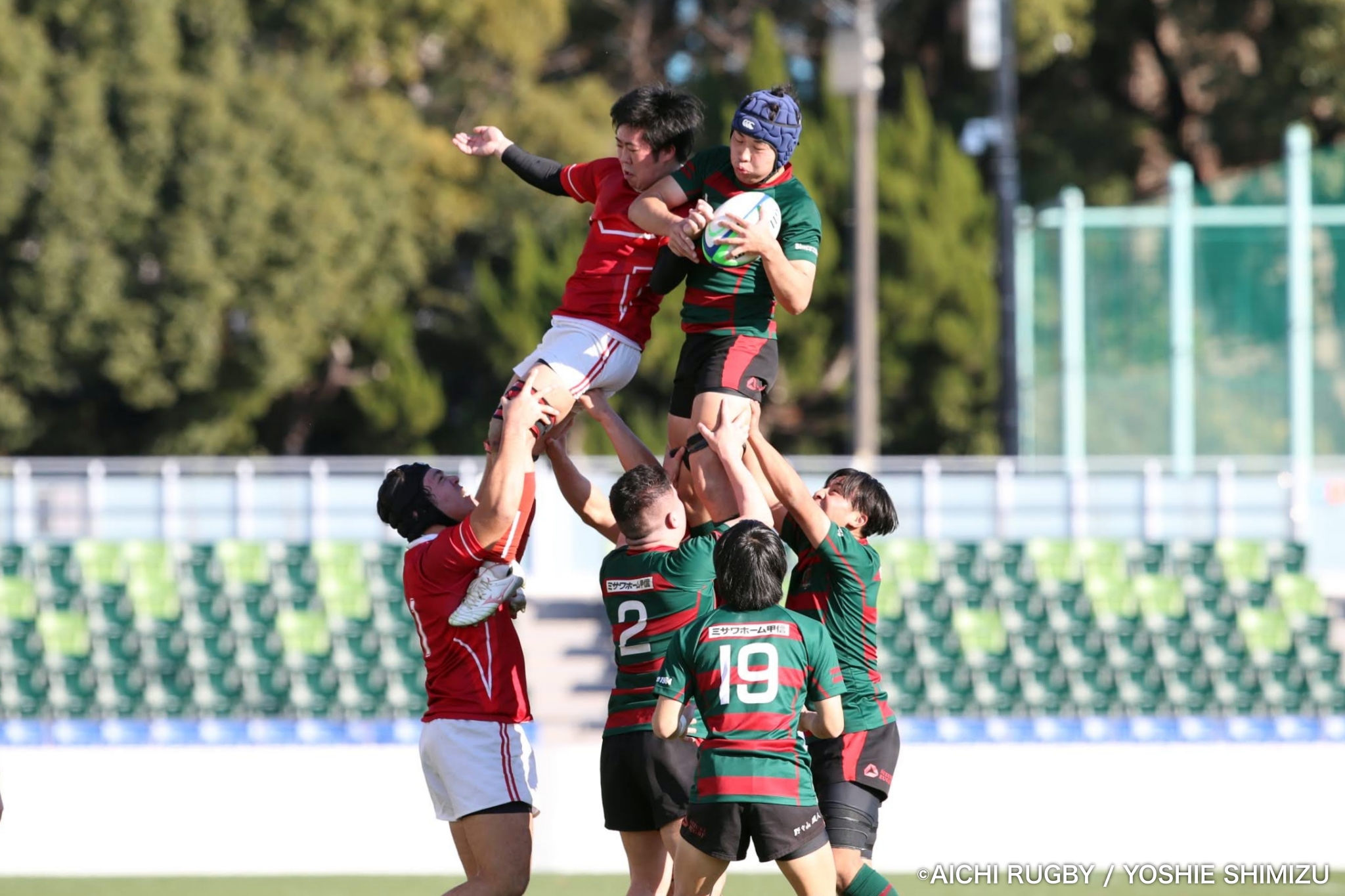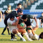 それでも鹿児島大学は、再度ペナルティを得るとラインアウトモールで前進。信州大学は堅守で対抗し、ゴール前での攻防が続く。