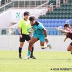すると、前半21分、鹿児島大は相手陣10m外側右中間スクラムでは、SH⑨今村南月がスクラム再度の隙を突き裏へ抜け、右へ流れながらディフェンスをかわし右隅へトライ、5−3とする。