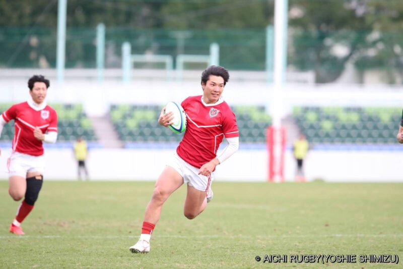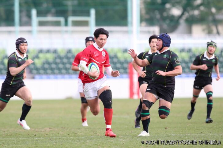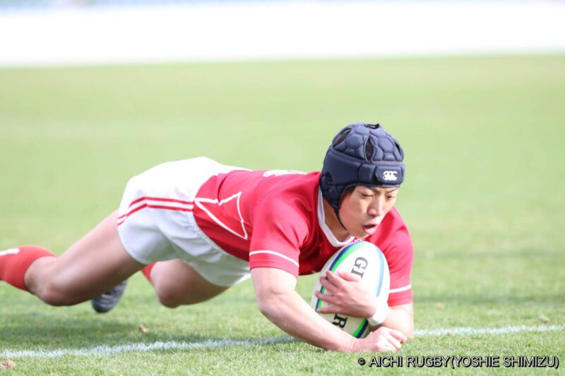 後半8分、相手ペナルティーから得た、相手ゴール前5m左ラインアウトで、モールを形成からHO②四元俊太が持ち出し、No8⑧山口晃世へボールが渡ると左中間へトライ、コンバージョン成功、24−8とする。