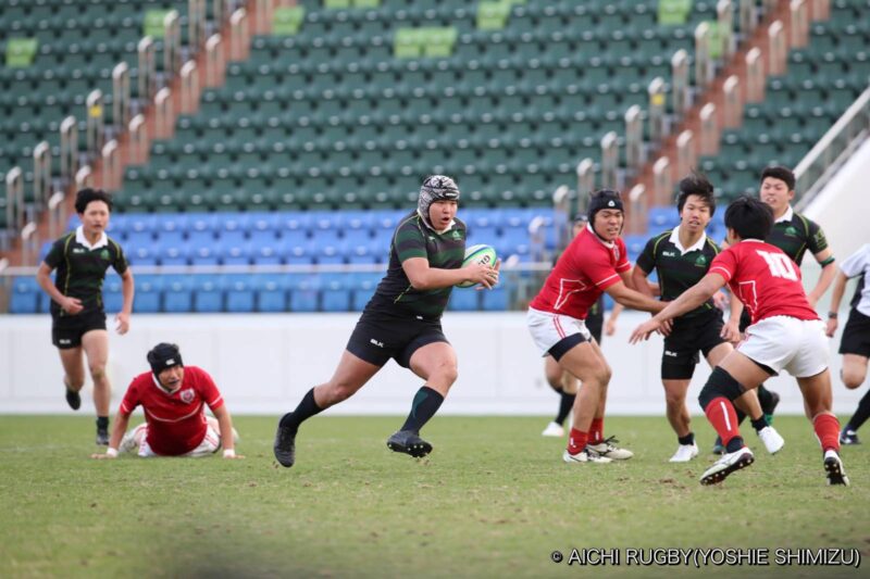 それでも、北海道大は、後半34分、相手のスクラムでの反則を得て、キックで前進し、相手陣22m外側右ラインアウトでは、左へ展開、CTB⑫小林哲士からWTB㉓間﨑陽へショートパスでボールが渡ると、縦に抜けゴールポスト左へトライ、15−29とする。