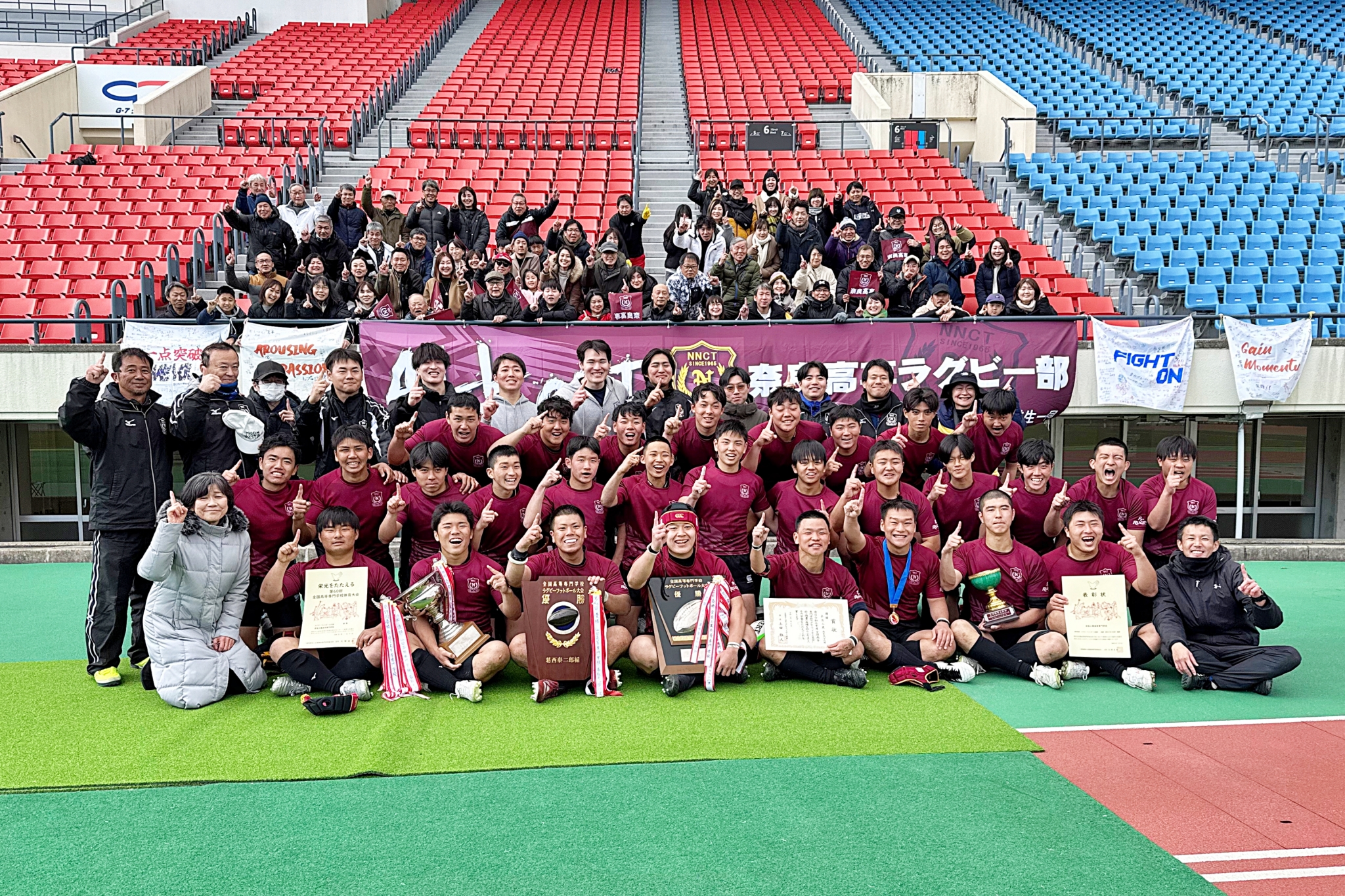 名取は最後まで2本目のトライを狙う。試合終了間際の35分、左TLから5mのLO。HO②吉田翼(キャプテン)からLO⑤青柳真でモールを作って押し込みTLを超えるが、グラウンディングできずトライならず。奈良が最後はキックでタッチに出し、ノーサイド。奈良が39-5で名取に勝利し、3連覇・8度目の優勝を飾った。