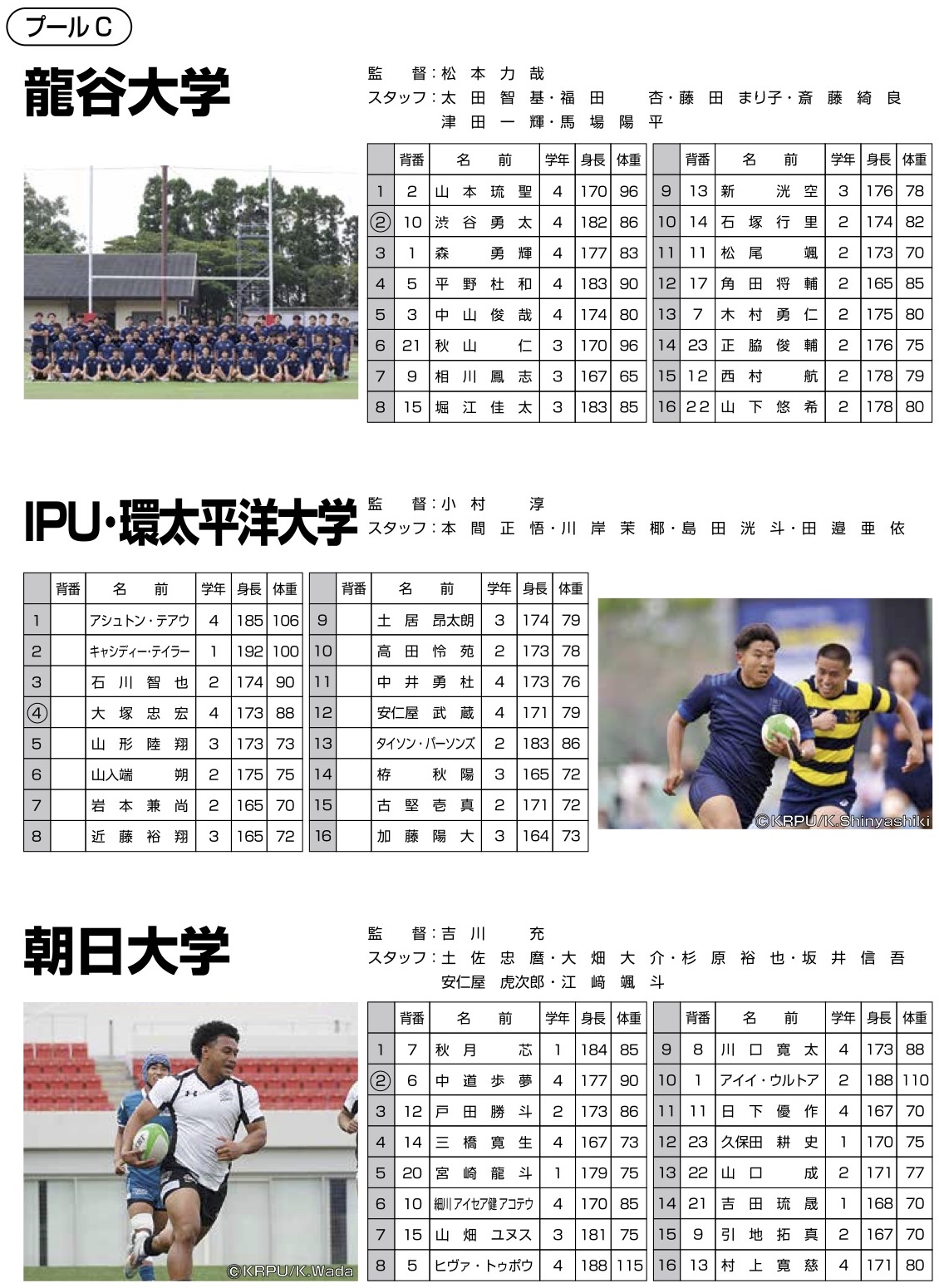 | Ⅰ-6 | 大学 | プールC | 11:40 | 朝日大学 | 36-5 | 龍谷大学 |