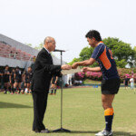 メイングラウンド改修工事を終えた一宮光明寺公園球技場の2面を使用して、 今年も、一宮ラグビークラブをはじめ、起工業高校、トライデントスポーツ医療看護専門学校の協力により、大会は行われた。