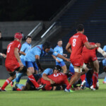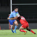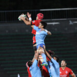 31分、敵陣22m付近のラインアウトからモール、ラックの連続攻撃で、途中出場の19番伊藤が内に切り込み、中央にトライ(7-32)。15番レイのG成功(7-34)。