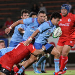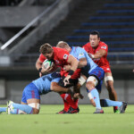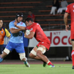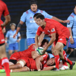 36分、ハーフウェイライン中央のスクラムから、23番トニシオ・バイフが突進し、最後は11番山下(楽)にパスを繋いでトライ(7-46)。15番レイのGも成功(7-48)。神戸製鋼がコカ・コーラに48対7で勝利した。