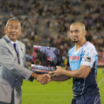 この日のマン・オブ・ザ・マッチは、3本のトライを決め大活躍し、チームの首位キープに大きく貢献したSH矢富が受賞した。また、昨年のワールドカップで活躍したヤマハのマレ・サウ選手が日本協会から記念品の贈呈を受けた。