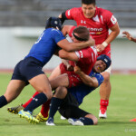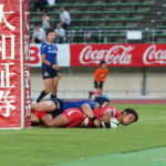後半は6分、大阪ガス左LO馬場聖が故意の反則を犯してシンビン。試合展開で劣勢の上、人的にもハンデを強いられ苦しい試合運びとなった。このあたりから序盤健闘したディフェンスも徐々に甘くなってきた。