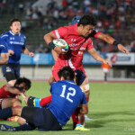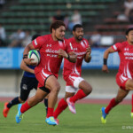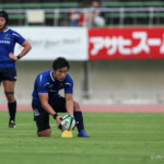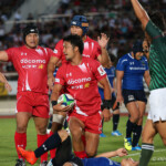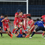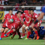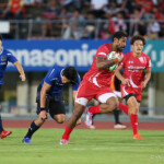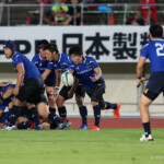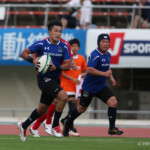 15分には相手陣に15m入った右中間ラックより、パスを受けたSOリアン・フィルヨーンが個人技を生かして鋭く切れ込み左中間に押さえた。FB才口のGも決まり14-0。その後も24分右LO杉下、27分FB才口、38、45分右WTBパエア ミフィポセチがトライを重ねた。Gはすべて才口が決めた。一方の大阪ガスは34分、相手陣に15m入った左中間で得たペナルティーで、左CTB宮田遼がPGを決めたのがやっと。