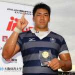 前年度の優勝盾を変換する同志社大学・山田主将