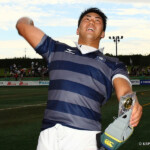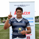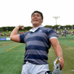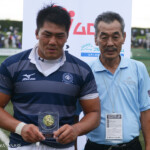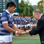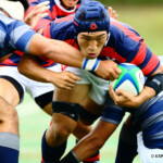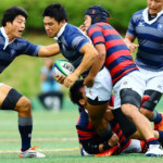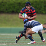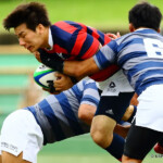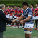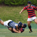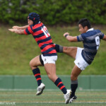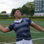 後半13分には京都産業大学が同志社大学ゴール前に攻め込む。京都産業大学はスクラムを押し込み、組むこと三度、⑨がブラインドサイドを突いてトライ。⑩のゴールも成功し、28対21と勝ち越し。京都産業大学がFW戦にこだわる、ぶれない戦い方を示した。