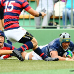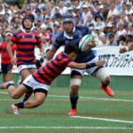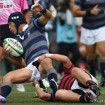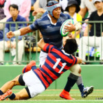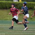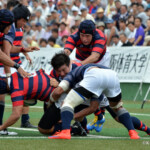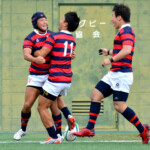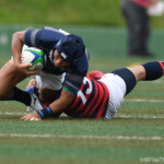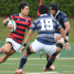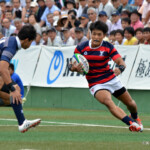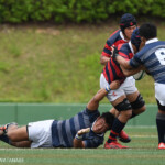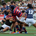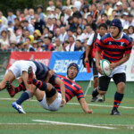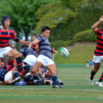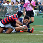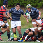 後半開始早々、同志社大学はBKにどんどん展開、中央付近ラックから左へ展開、⑩から⑮と渡り、⑮抜け出して⑧、⑪とつないで左隅にトライ、⑩のゴールも成功し、21対14。追い上げののろしを上げた。